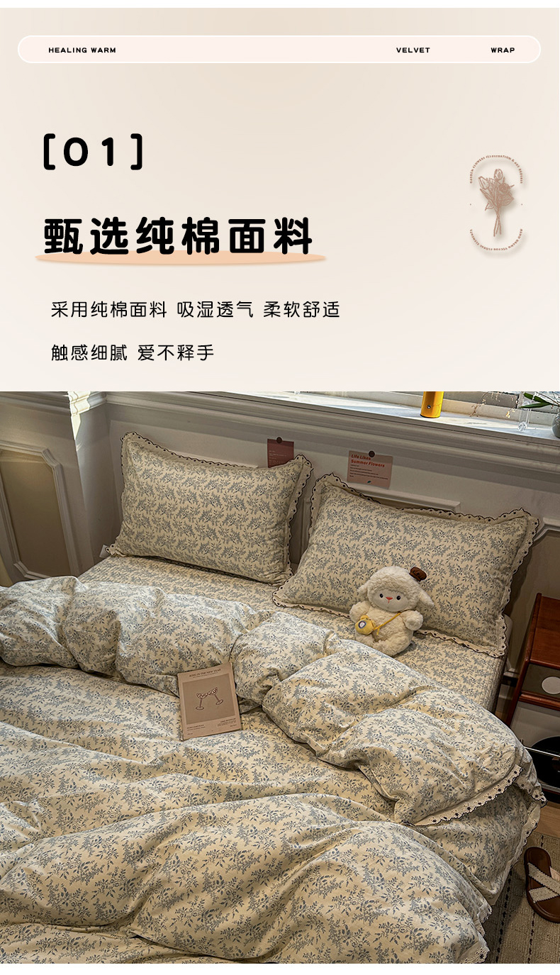 (总)橙子家居 2025新款小清新全棉纯棉花边款床单四件套,春风里-紫,琥珀流光,蓝心兔,玲娜,梦幻花园兔,舒芙蕾,甜甜夏日,芋泥啵啵