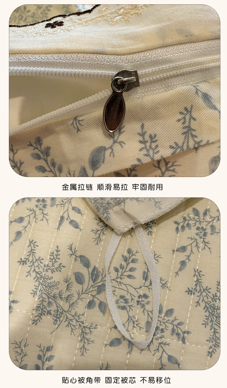 (总)橙子家居 2026新款全棉棉麻绣花被套棉花床盖四件套,棉麻-本色,棉麻-粉色,棉麻-咖色,棉麻-绿色