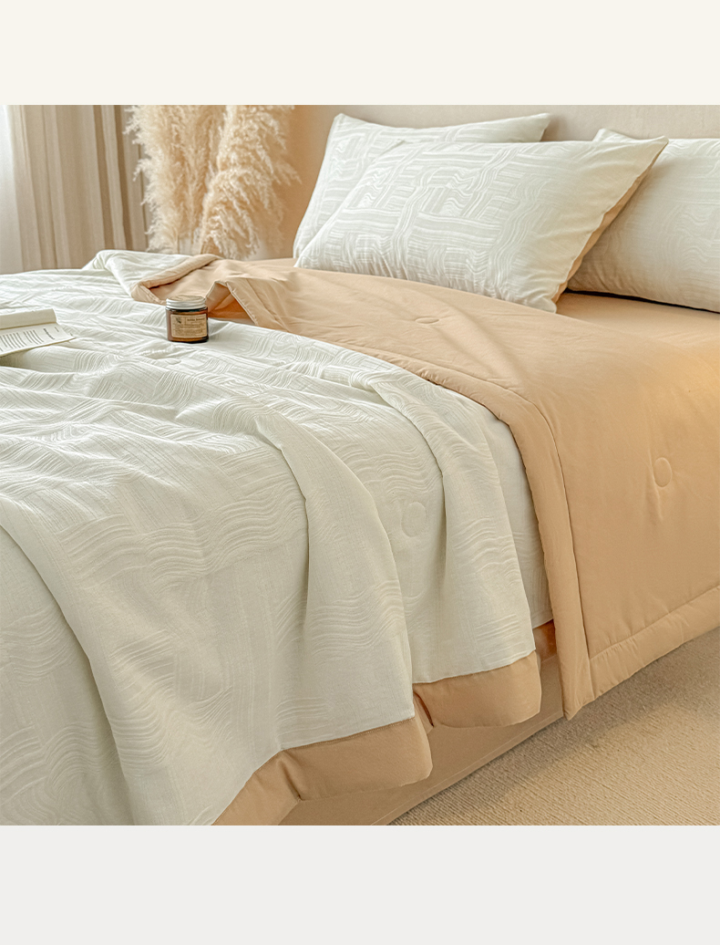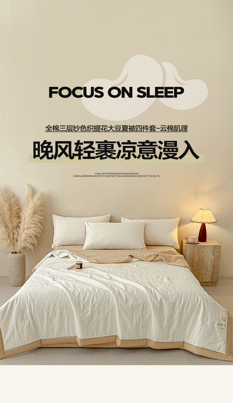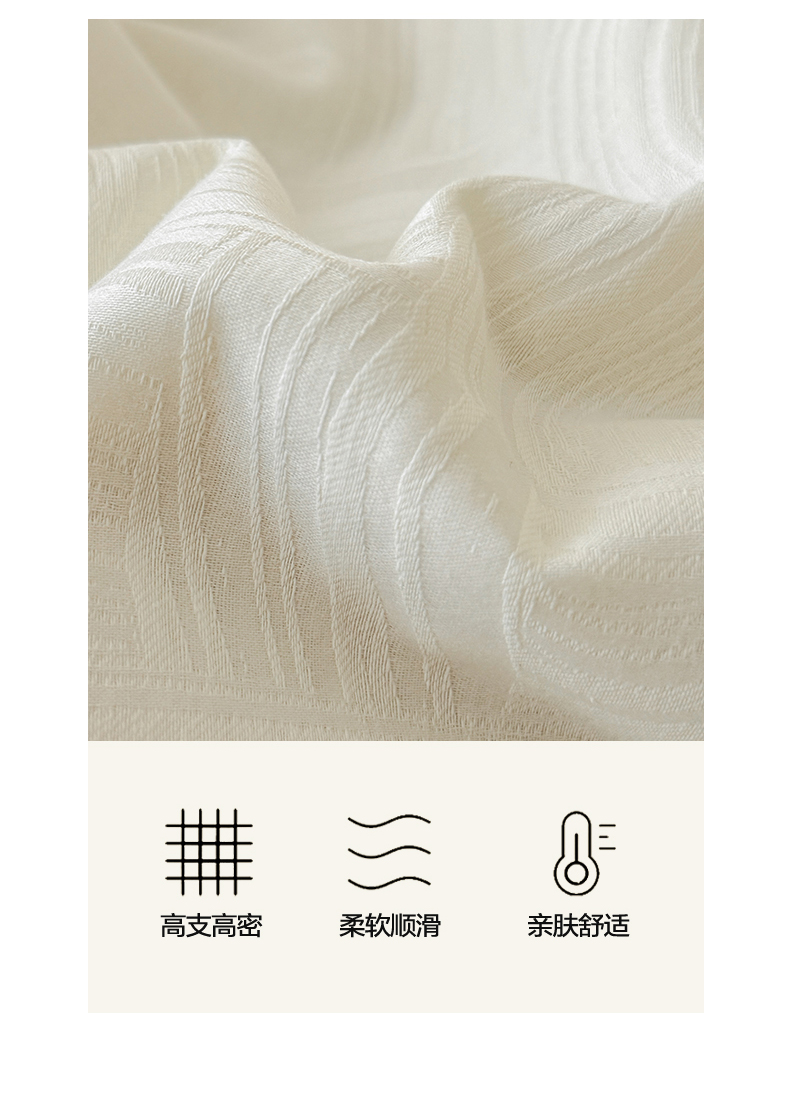 当前位置: 91家纺网 > 商品网购 > 被子 > 夏被 > 一加一 2026新款全棉纯棉三层纱色织提花大豆夏被四件套-云棉肌理 幻纤影(米白)