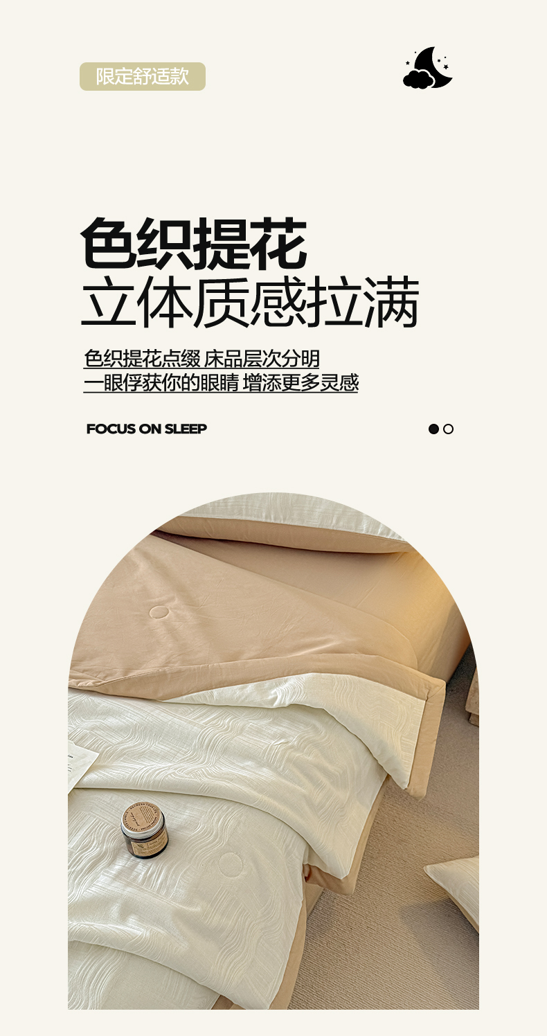• 91家纺网 家纺一手货源 找家纺 一加一 2026新款全棉纯棉三层纱色织提花大豆夏被四件套-云棉肌理 幻纤影(米白)