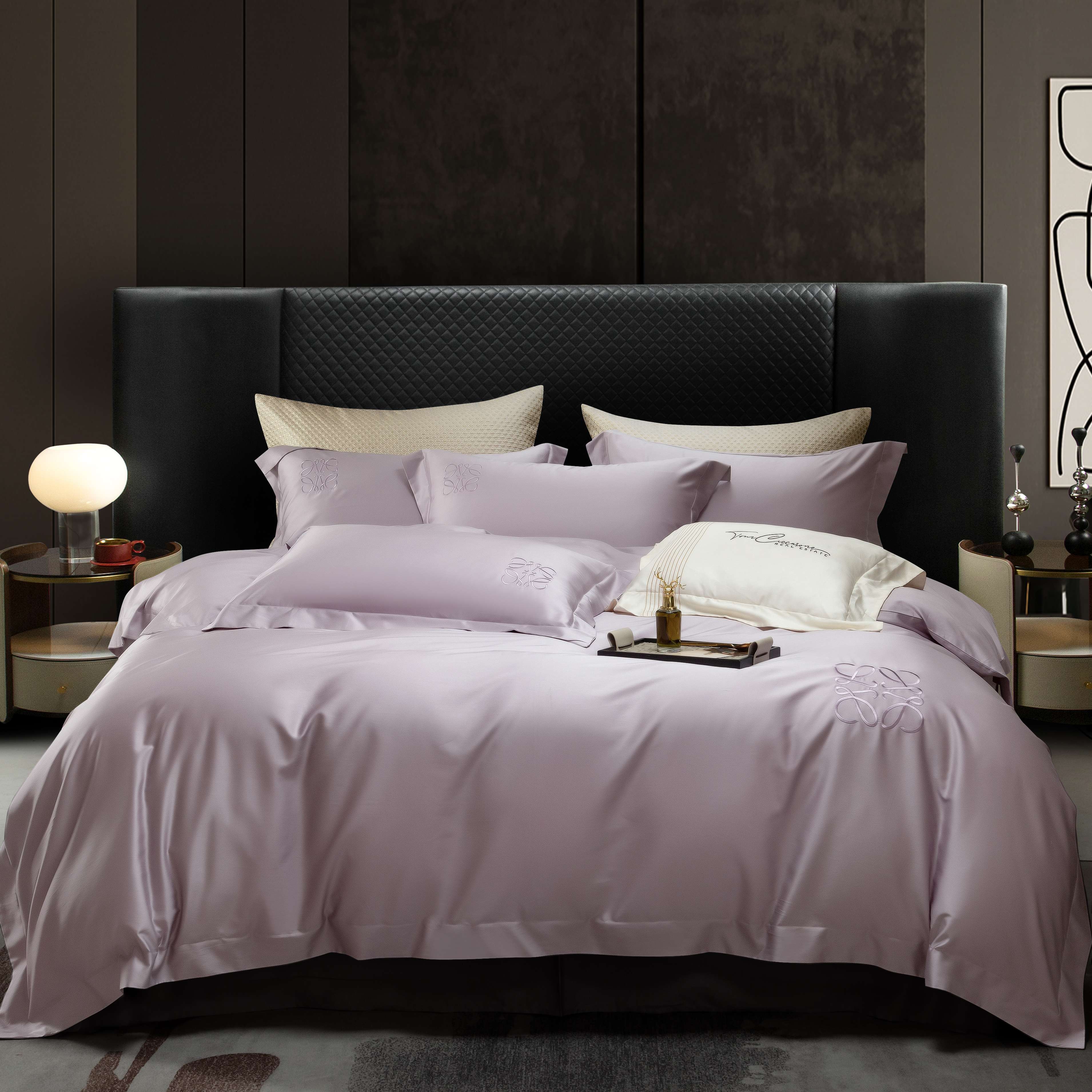 (总)莱豫家纺 2026春夏新款100s兰精天丝绣花四件套,罗意威粉玉,罗意威粉,罗意威黄,罗意威抹茶绿,罗意威水蓝,罗意威紫