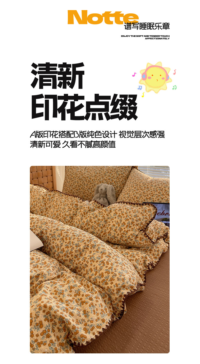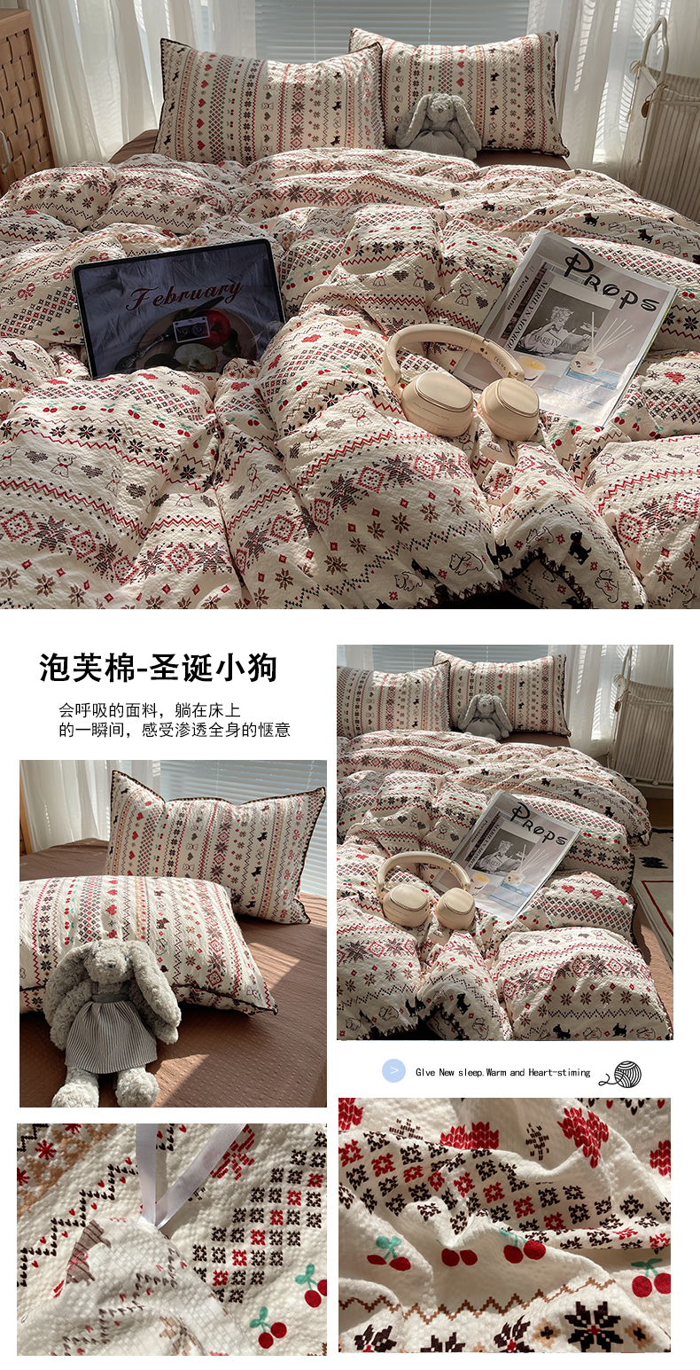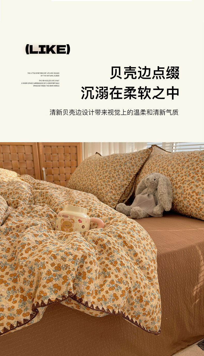 当前位置: 91家纺网 > 商品网购 > 床品套件 > 四件套 > 其它四件套 > 桃心家居 2026新款A类费尔岛可爱卡通贝壳边三角针工艺双层纱泡芙棉泡芙纱系列四件套 泡芙棉-盛夏