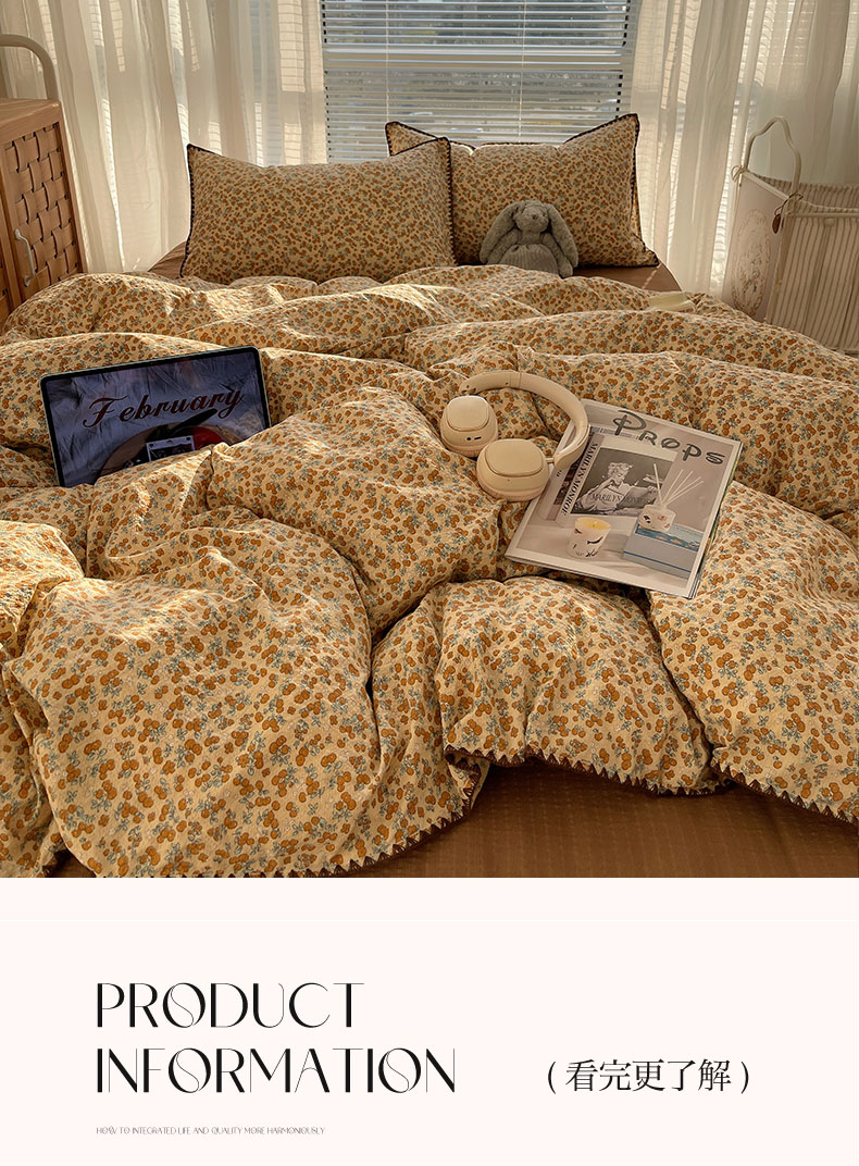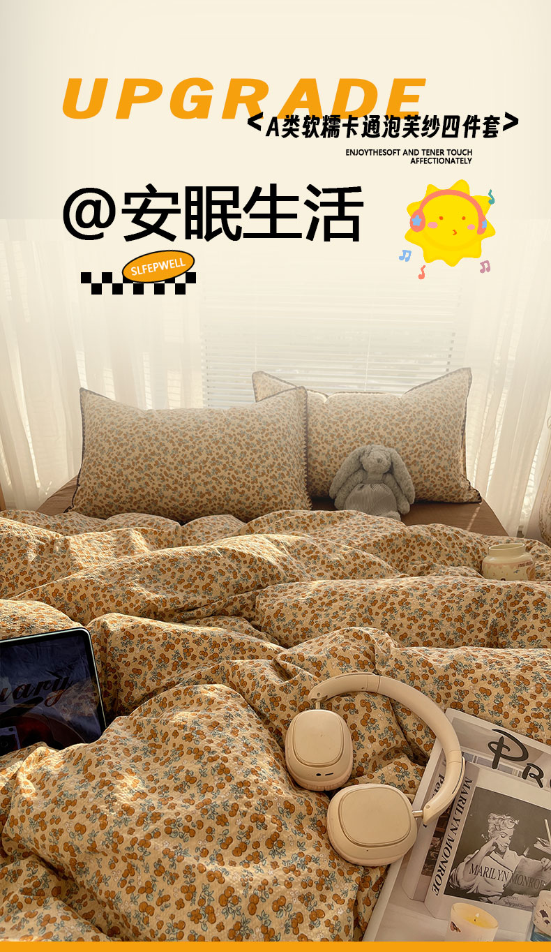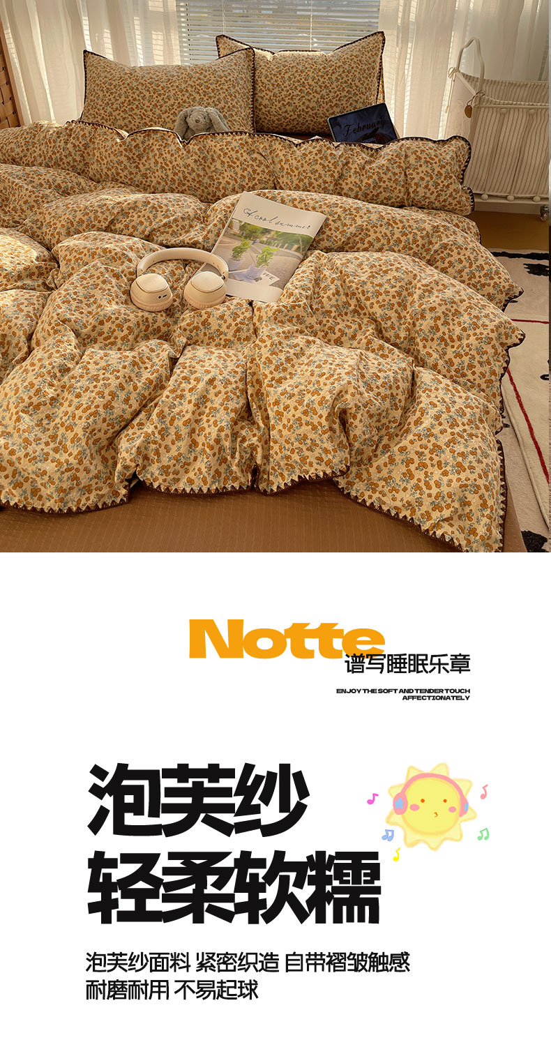 当前位置: 91家纺网 > 商品网购 > 床品套件 > 四件套 > 其它四件套 > 桃心家居 2026新款A类费尔岛可爱卡通贝壳边三角针工艺双层纱泡芙棉泡芙纱系列四件套 泡芙棉-盛夏