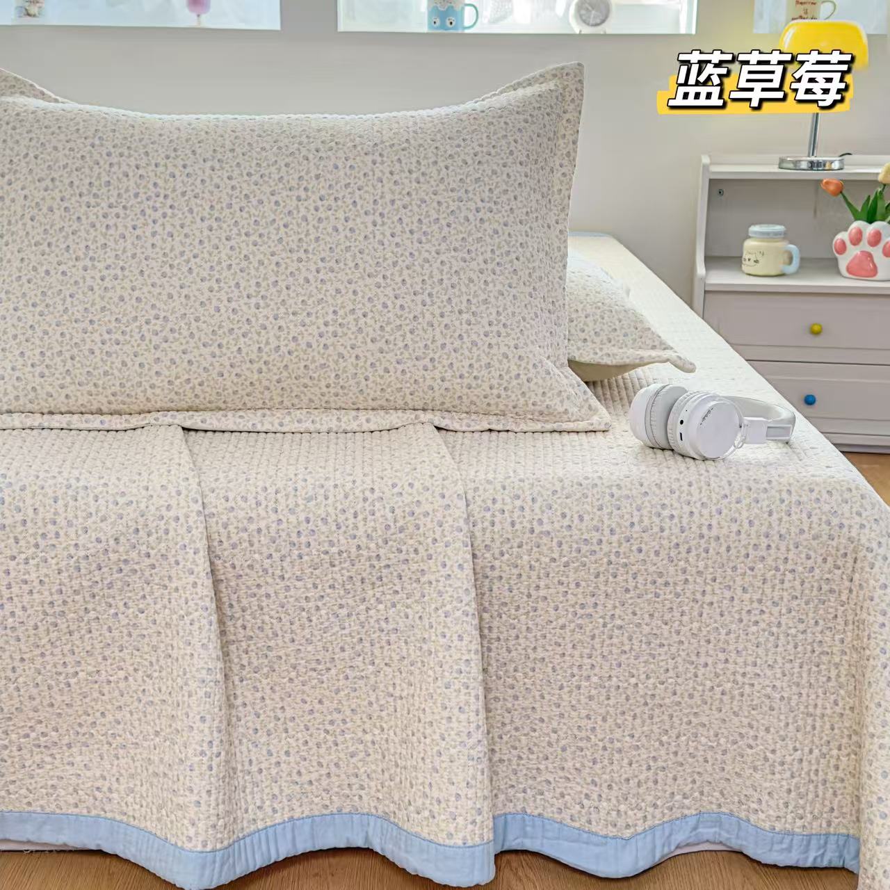 商品名称:(总)双层纱床盖三件套 新款全棉纯棉花边防滑夹棉床单单件四季通用