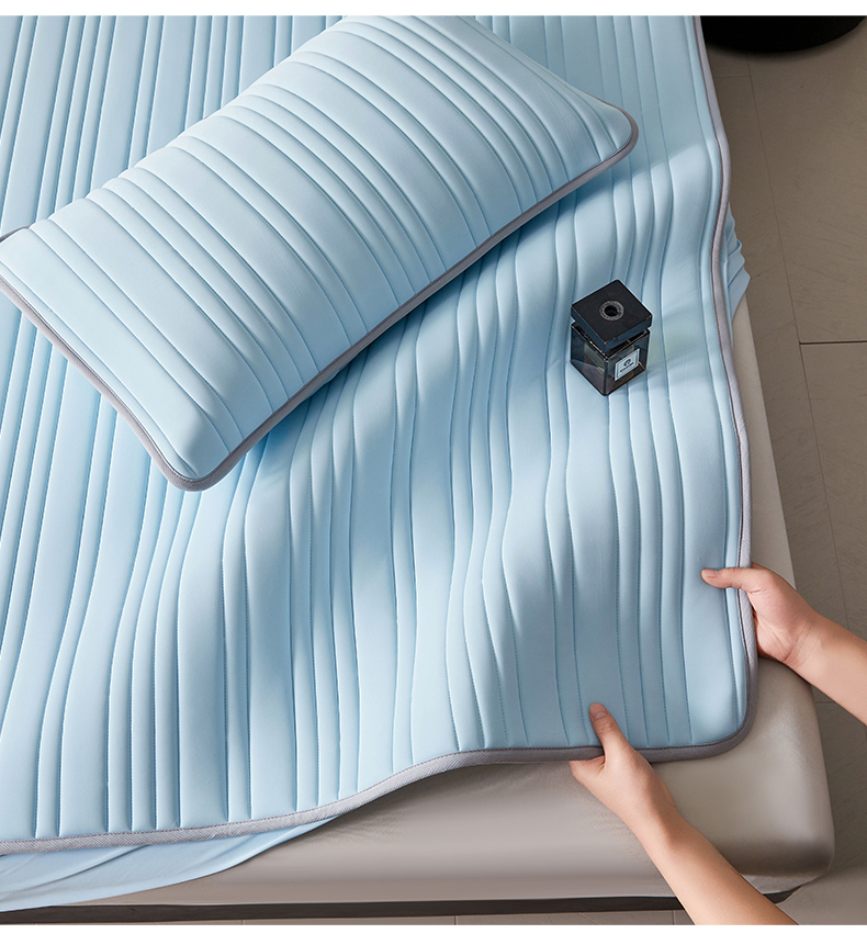 (总)雯豆家纺 2026春夏新款碳光冰丝席子三件套加厚三明治冰丝软席平铺席凉席席子,千鸟格-绑带款-海星蓝,千鸟格-绑带款-千禧粉,千鸟格-绑带款-松石绿,千鸟格-绑带款-香槟金,千鸟格-绑带款-银帆灰,组合图仅供展示不可下单