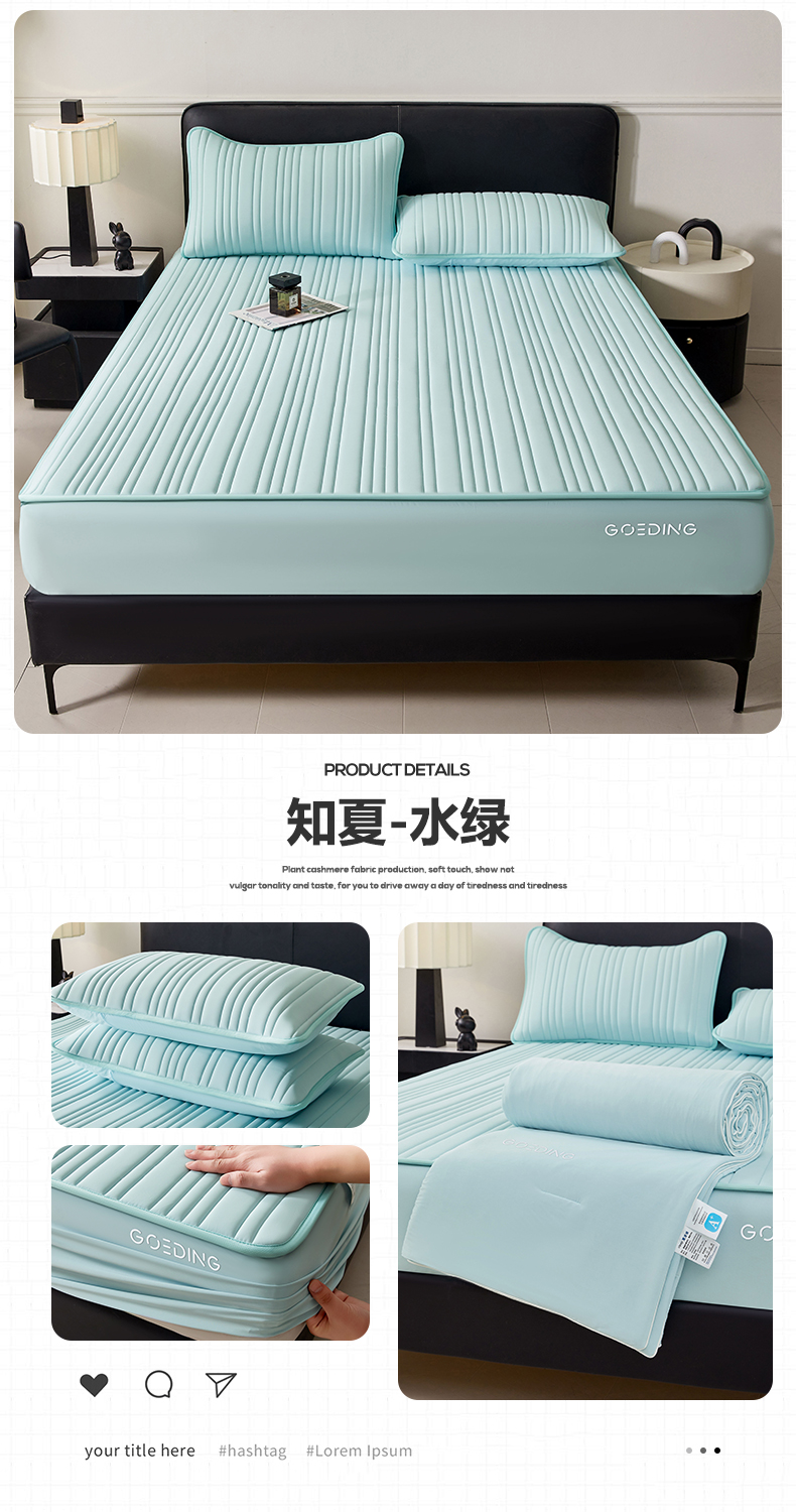 (总)雯豆家纺 2026春夏新品氨纶凉感床笠夹棉款床笠三件套床垫保护套,知夏-粉,知夏-黛蓝,知夏-浅灰,知夏-青草绿,知夏-深灰,知夏-水蓝,知夏-水绿