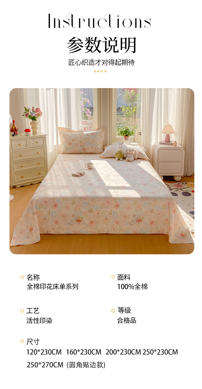 (总)女子家纺 2026新款全棉纯棉印花花卉款床单单品床单单件,安暖如夏,京都花园,花丛甜崽,荷叶邮差,复古诗笺,动物花园,春游手记,花仙兔兔,蓝沫,洛克庄园红,玫瑰小狗,妙趣乐园,普罗旺斯,俏佳人,青绿银杏,柔色花笺,苏糖粉,苏糖咖,甜蜜纪念日,童话花町,微花耳耳粉,微花耳耳蓝,温柔花朵熊,芜晴花紫,星辰蔷薇,徐徐花开,油画弦音,玉笛花间,栀子花语,自然手记粉
