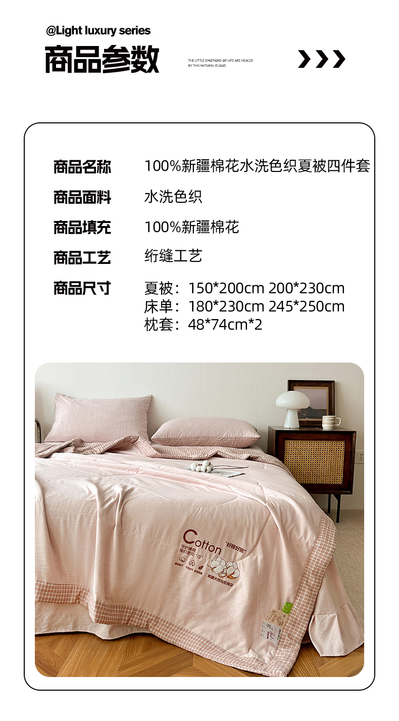 云玲时尚 2026新款100%新疆棉花水洗色织夏被四件套 组合图