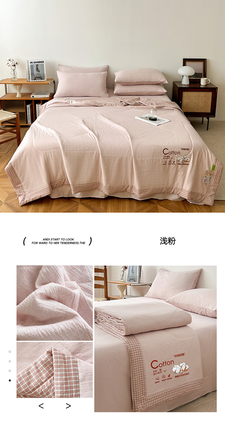 • 91家纺网 家纺一手货源 找家纺 云玲时尚 2026新款100%新疆棉花水洗色织夏被四件套 组合图
