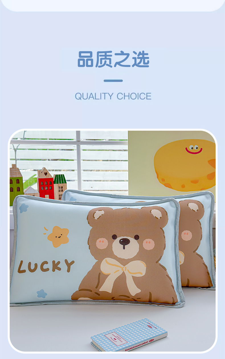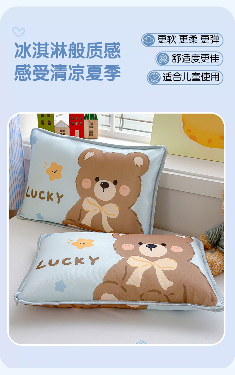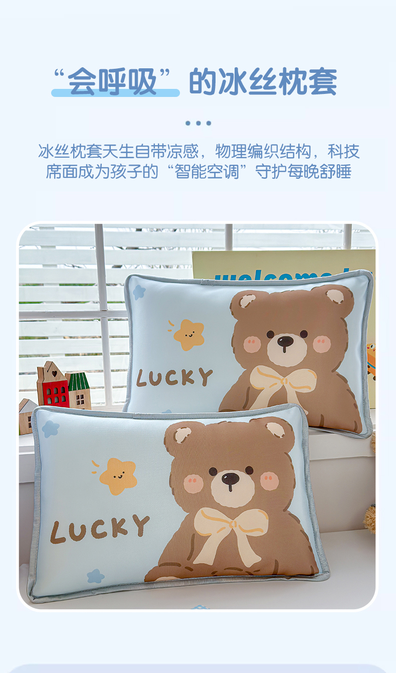 丽美人家纺 2026新款柔软亲肤儿童冰丝枕套 好运熊