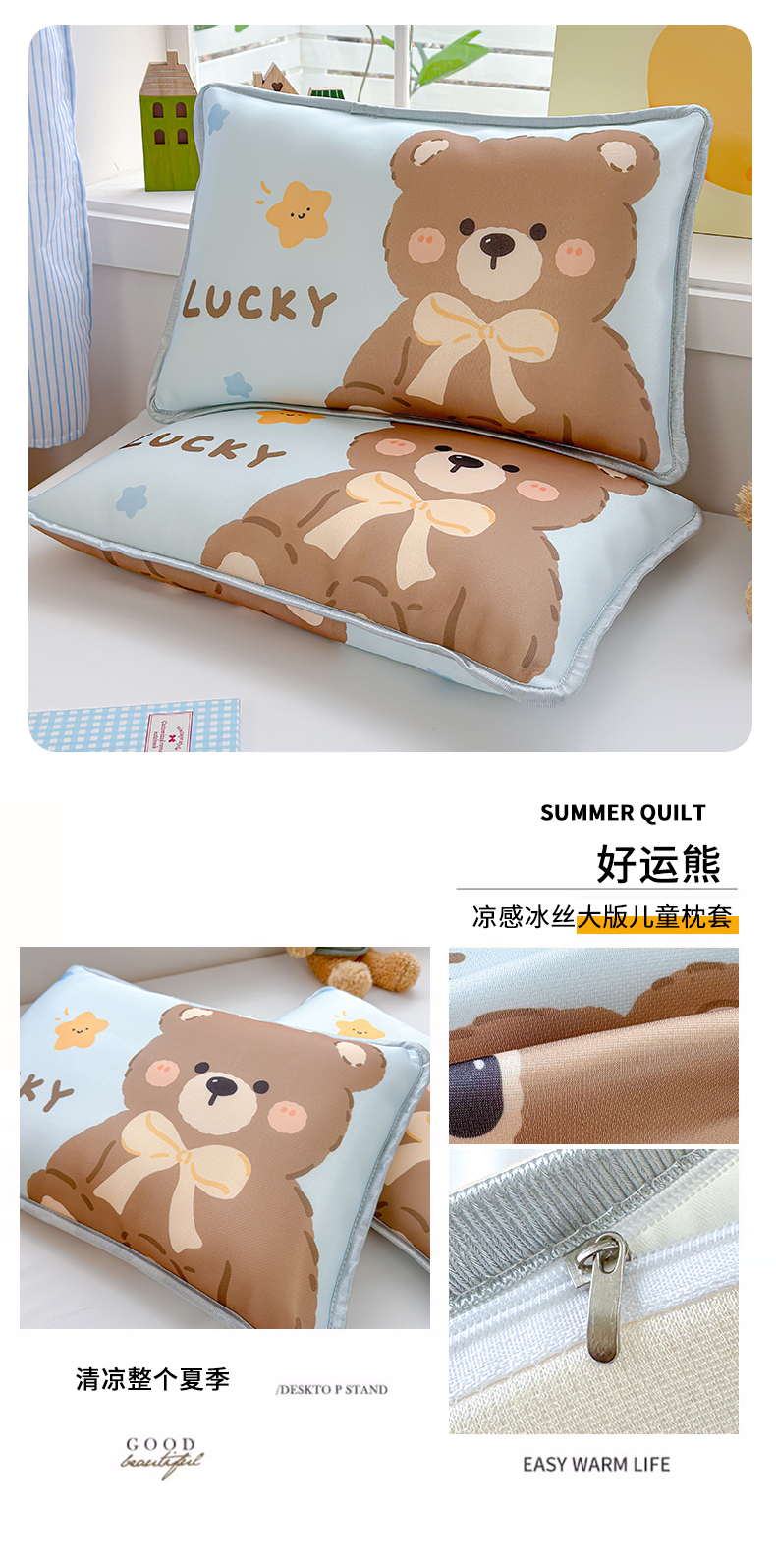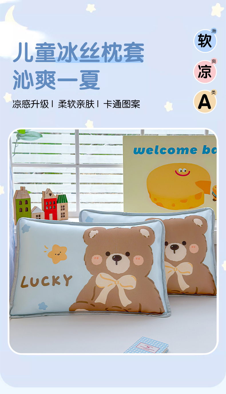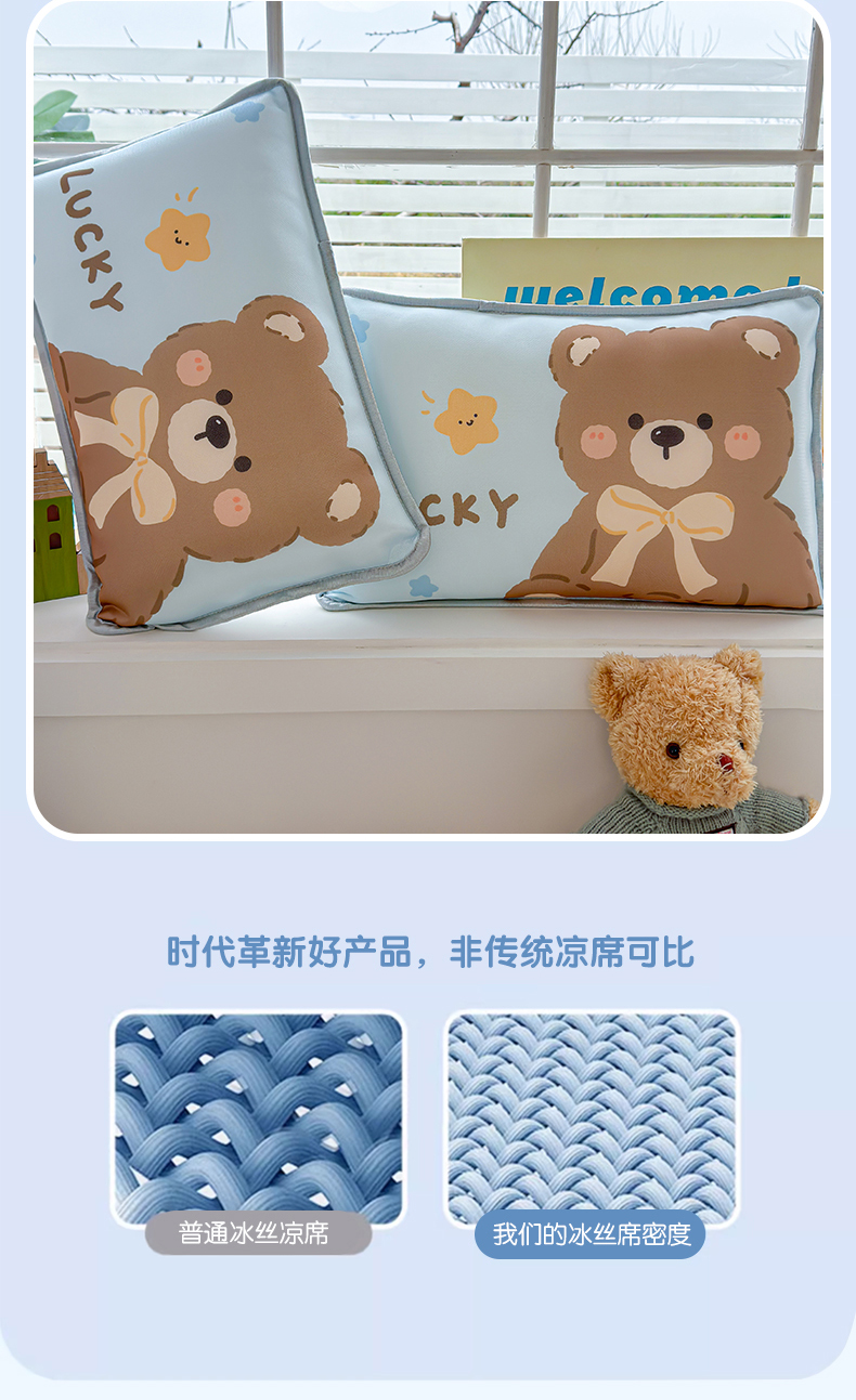 丽美人家纺 2026新款柔软亲肤儿童冰丝枕套 好运熊