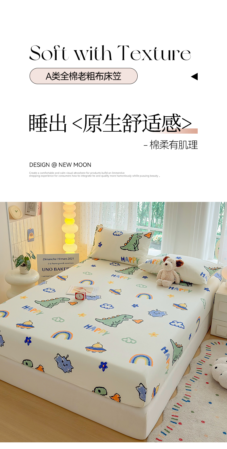(总)慕梵家居 2026春夏新款全棉纯棉老粗布单床笠 床笠单件,豹纹-粉,豹纹-咖,彩虹飞船,繁花粉,繁花绿,格调,格言-咖,格言-绿,兰爱心,兰线条,蘑菇兔,企鹅,小雏菊,小恐龙,小木马,辛巴,枝繁叶茂,枝叶