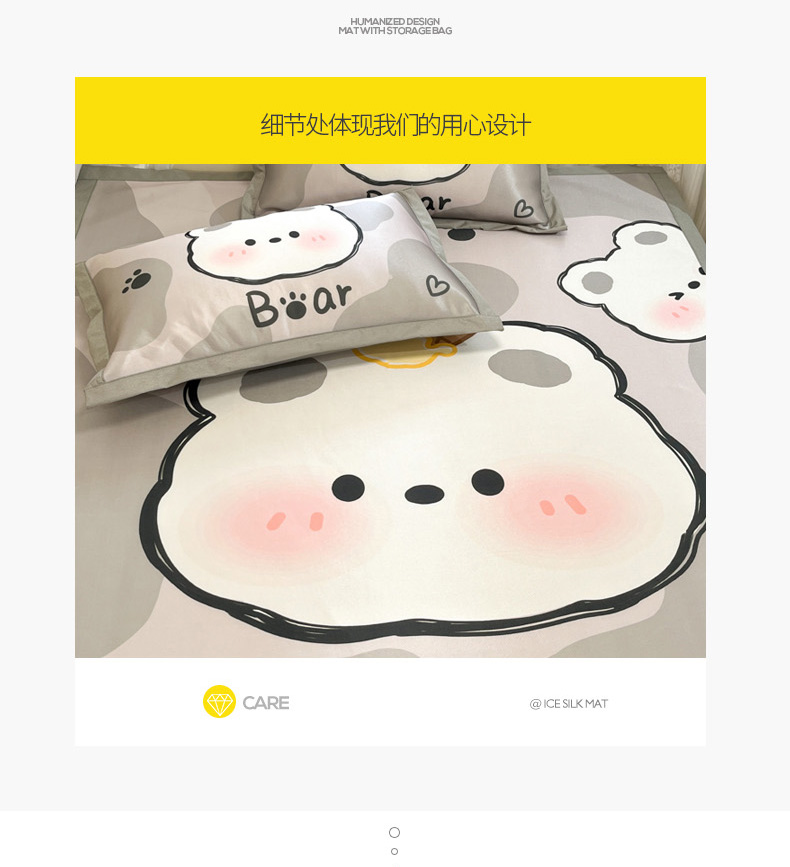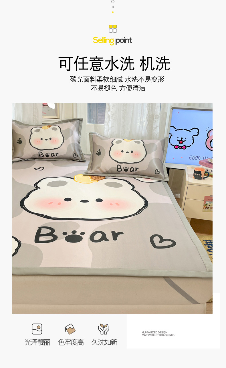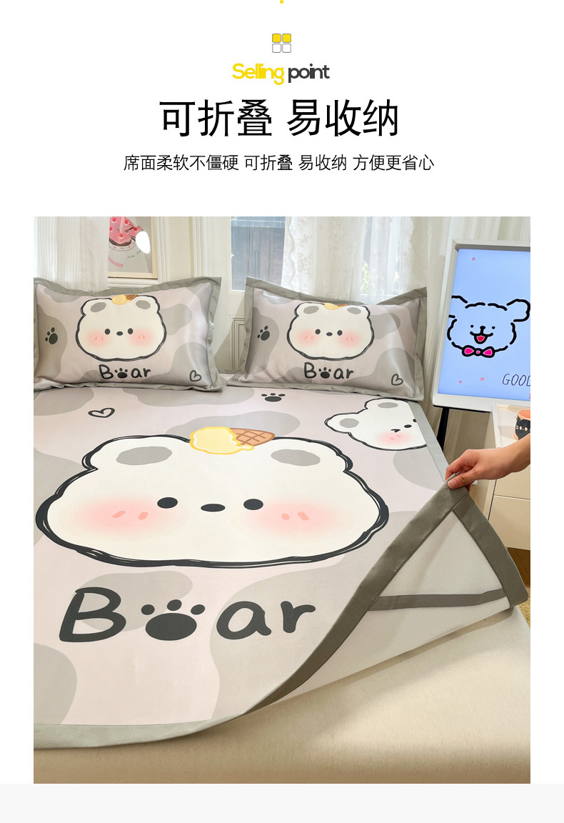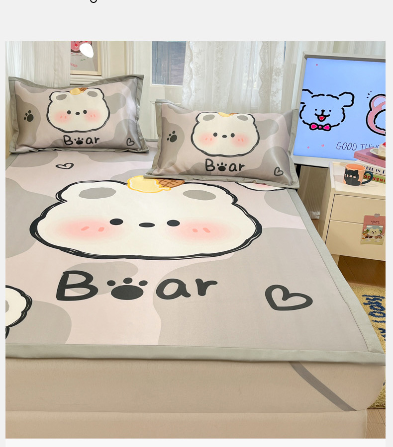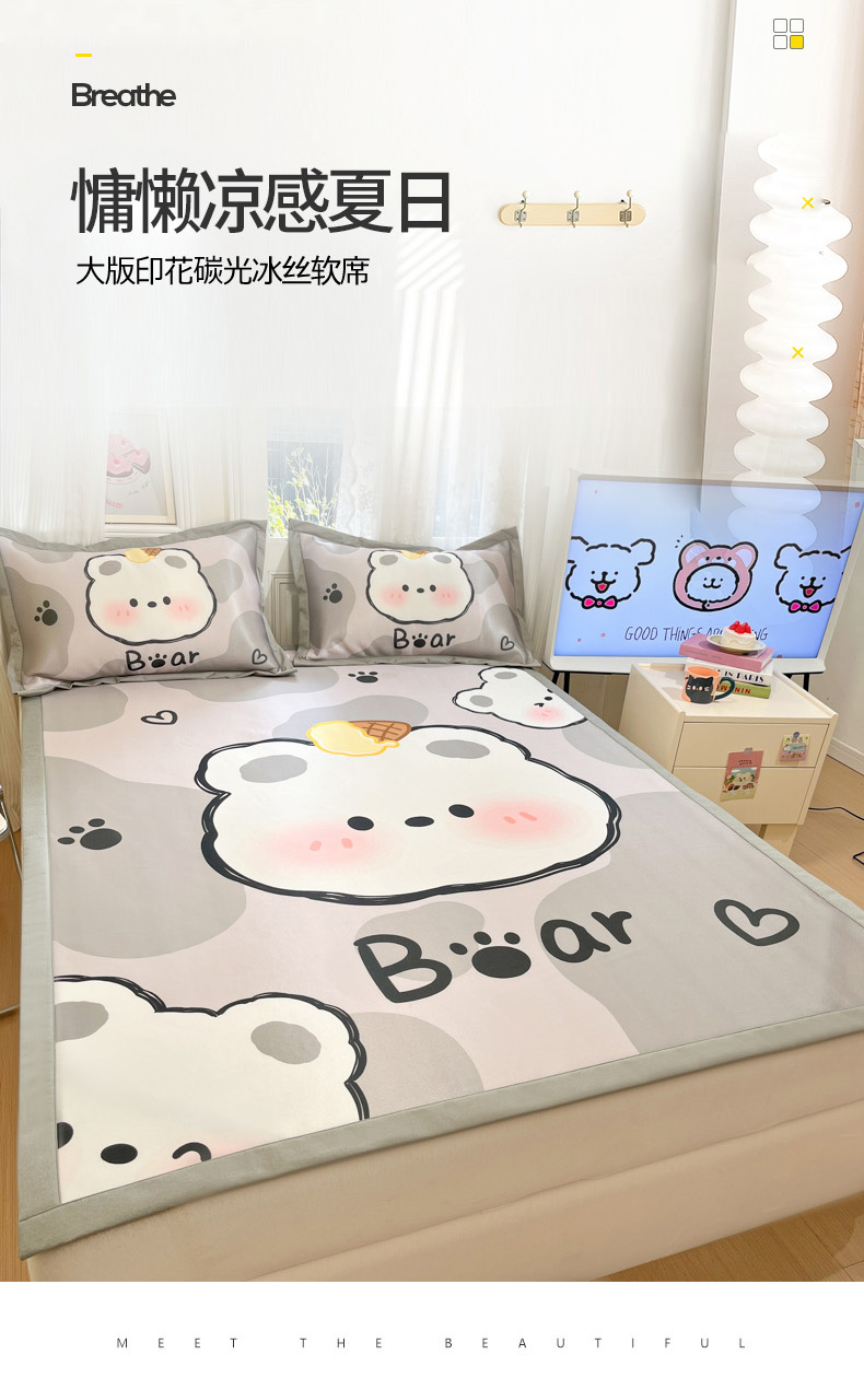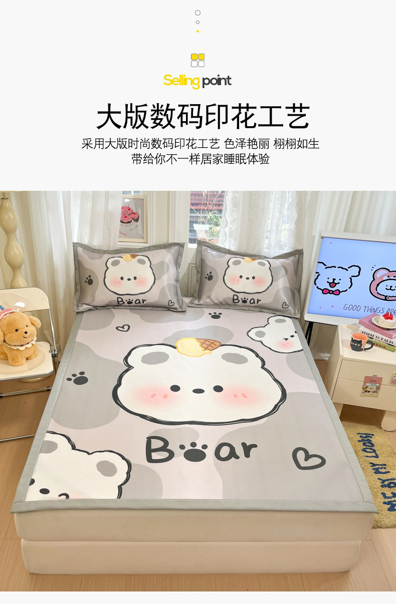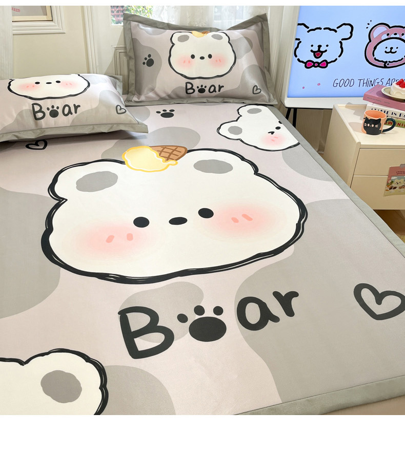 柒月家居 2026新款大版印花碳光冰丝席床席款凉席 斑点熊