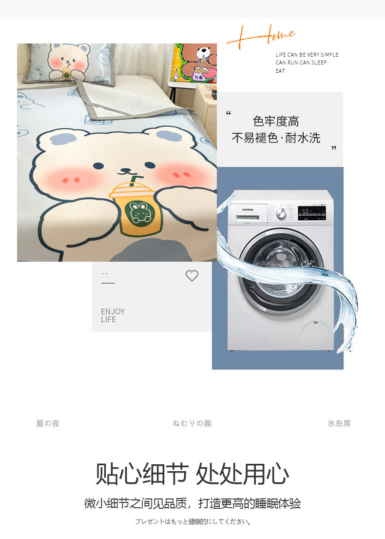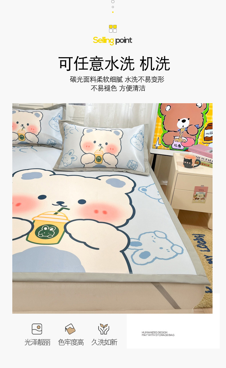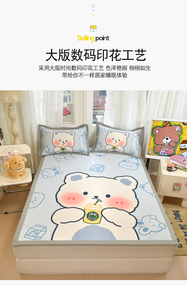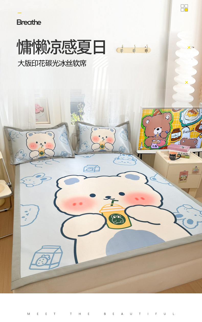商品名称:柒月家居 2026新款大版印花碳光冰丝席床席款凉席 萌宝