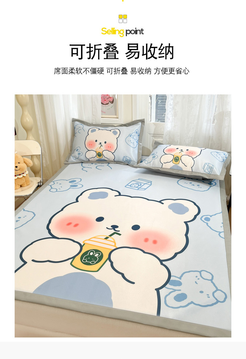 (总)柒月家居 2026新款小清新乳胶凉席三件套,粉格凯蒂,爱心小熊,爱心熊猫,豹纹精灵,波点萌宠,彩色木马,格调,花季,灰格小熊,简约甜喵,蓝格甜猫,蓝块汪仔,奶盖猫咪,碎花派对,桃桃奶猫,甜酷星兔,星帽小熊,星星月亮,字母小熊
