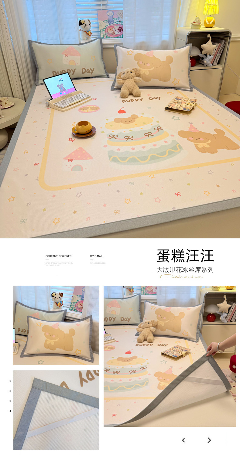 (总)柒月家居 2026新款大版印花碳光冰丝席床席款凉席,围兜狗狗,斑点熊,茶茶蓝猫,蛋糕派对,蛋糕汪汪,动物世界,房子小狗,卷卷白狗,满天星辰,猫猫小窝,猫咪伙伴,萌宝,萌系女孩,蘑菇小兔,晚安熊,汪汪乐园,星星之愿,熊猫宝贝,雪纳瑞狗