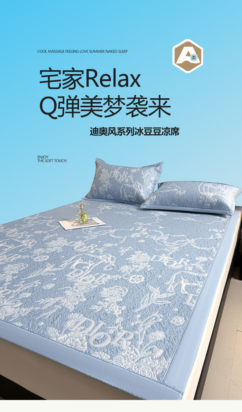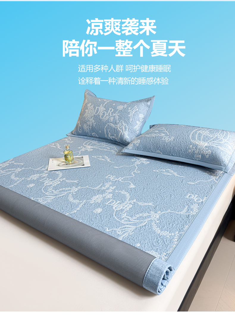 当前位置: 91家纺网 > 商品网购 > 床上用品 > 凉席 > 凉席套件 > 慕木家纺 2026新品高端复合三明治PE乙纶双面提花610克冰豆豆凉席迪奥风系列(提供买家秀) 床笠款迪奥风-蓝