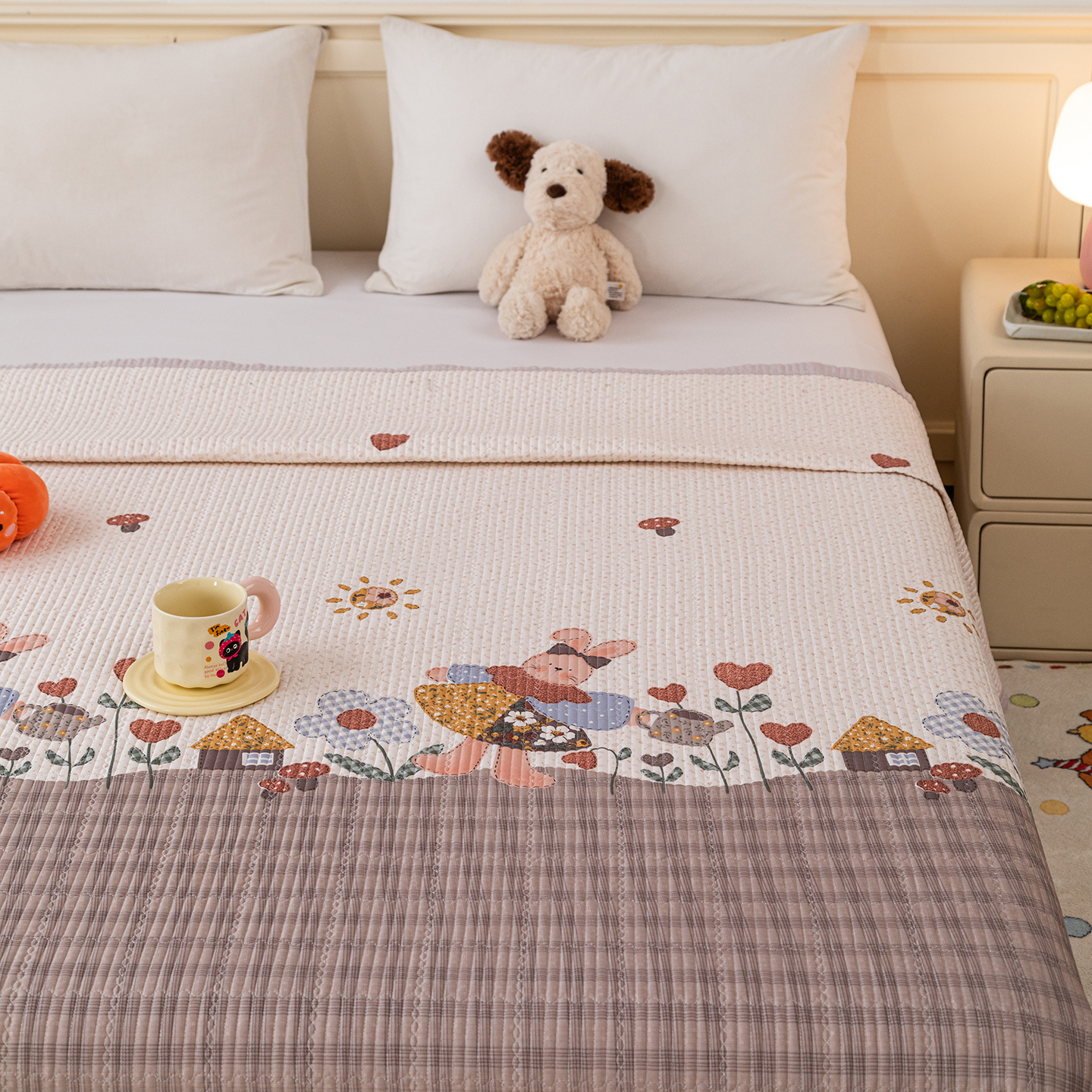 (总)源舜家纺 2026新款天丝莫代尔大版凉感床盖,抱抱兔,春日花语,快乐周末,蘑菇女孩,甜心女孩