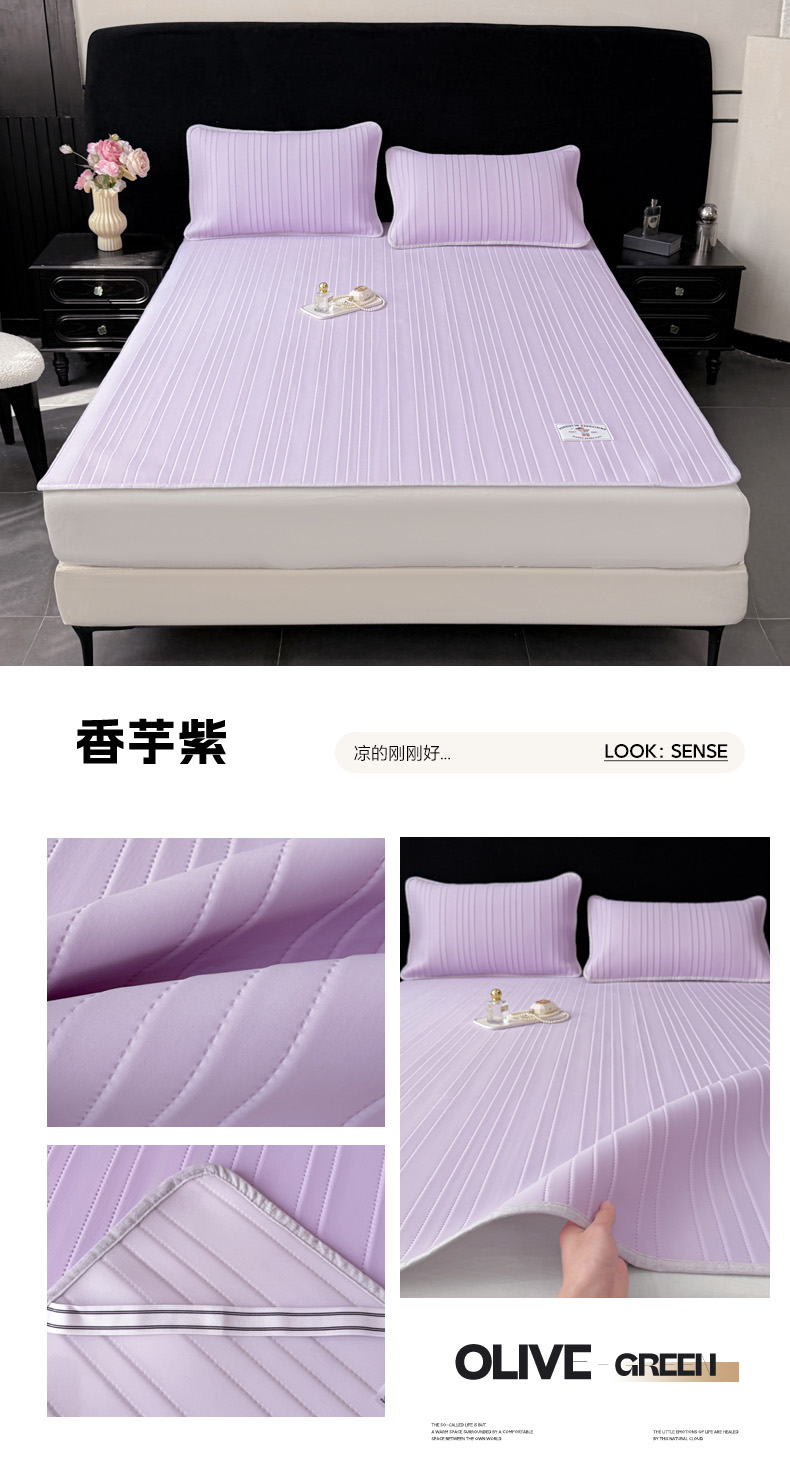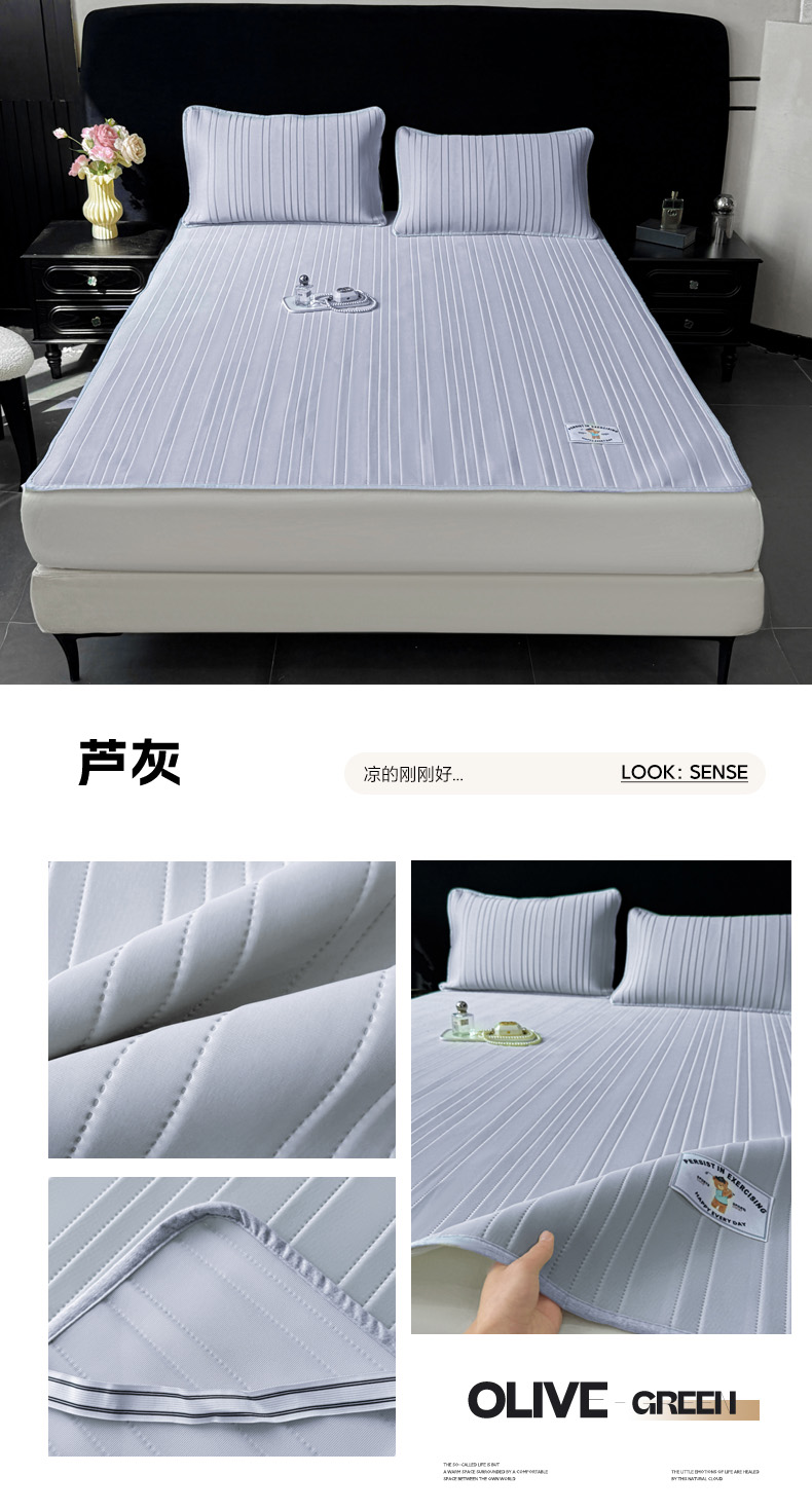 • 91家纺网 家纺一手货源 找家纺 (总)麋兔 2026新款刺绣纯色氨纶凉感乳胶席子凉席,高级灰,海军蓝,卡布粉,浅桔,浅兰,浅紫