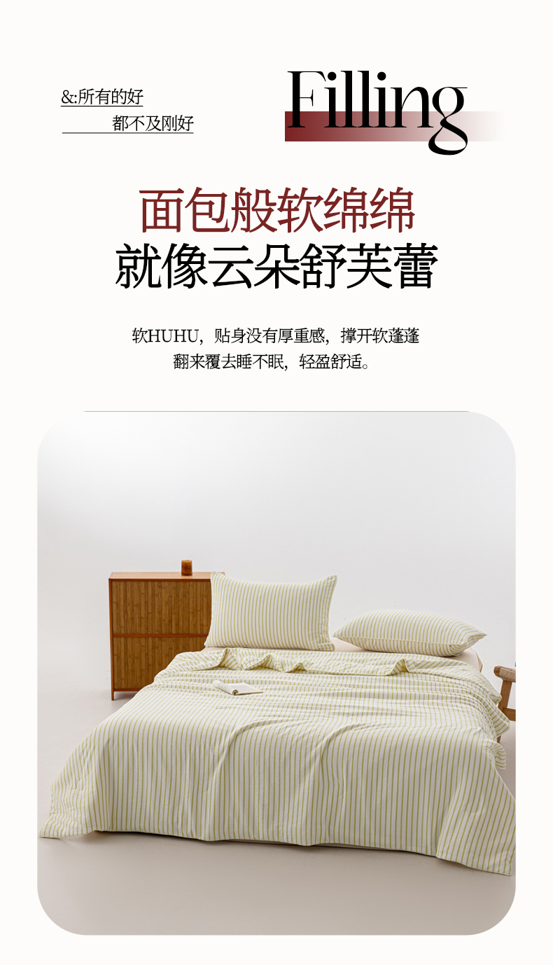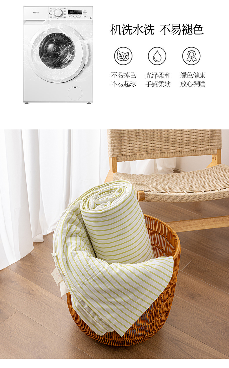 商品名称:迪梵家纺 2026新款A类无印风水洗棉条纹大豆夏凉被夏被空调被薄被子被子被芯(带买家秀) 条纹-黄