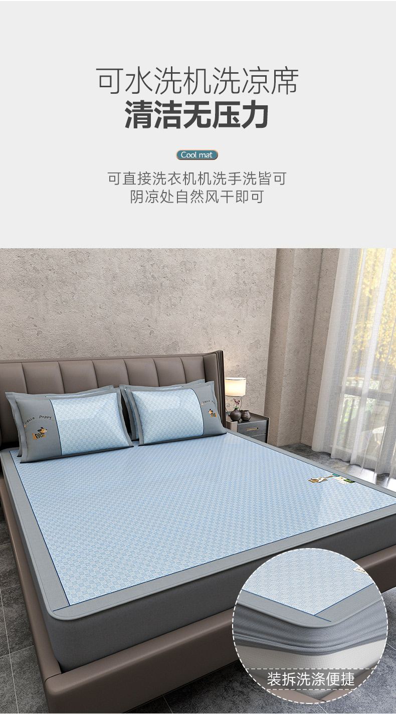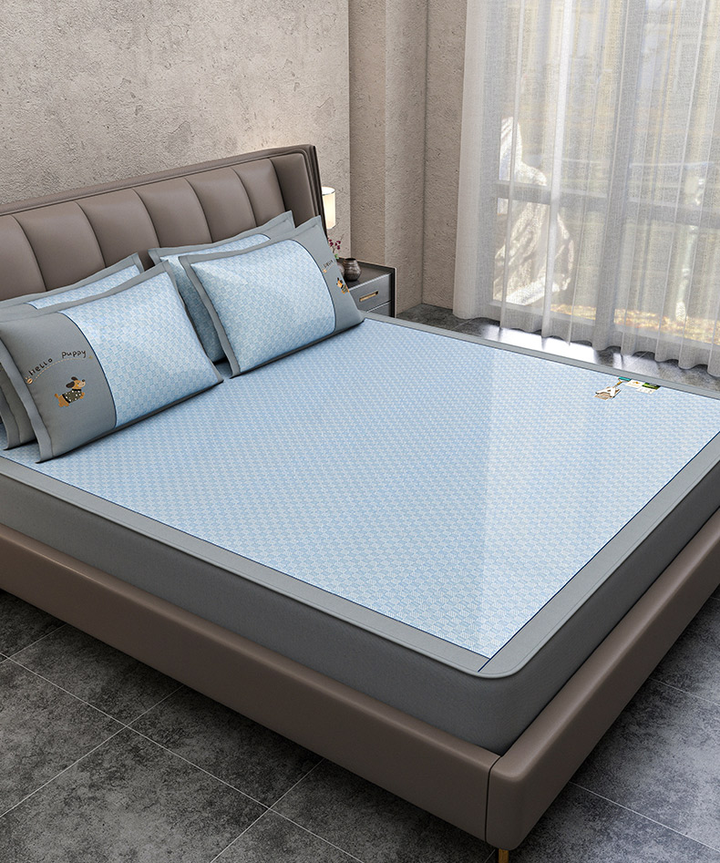 (总)小牛席业 2026新款小清新凉感冰丝席席子凉席-床笠款,粉色,灰色,蓝色,香槟