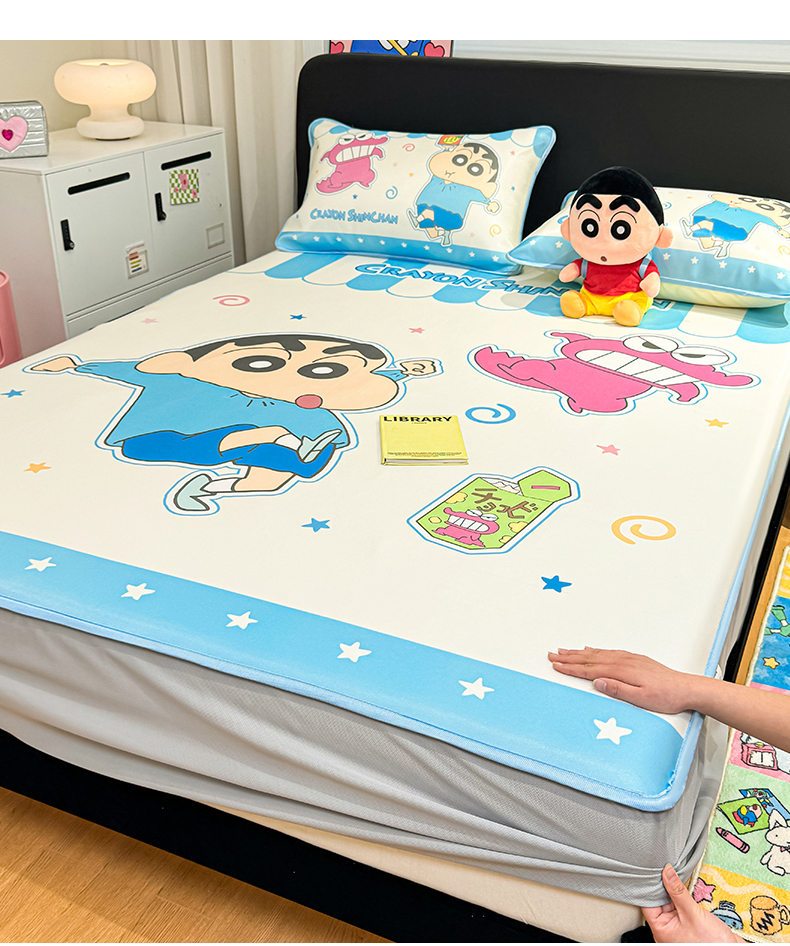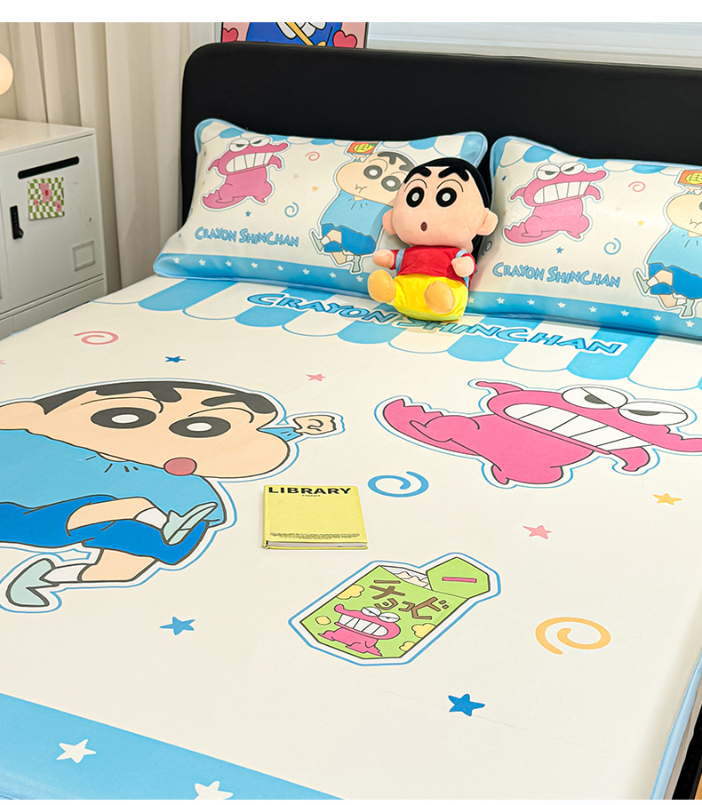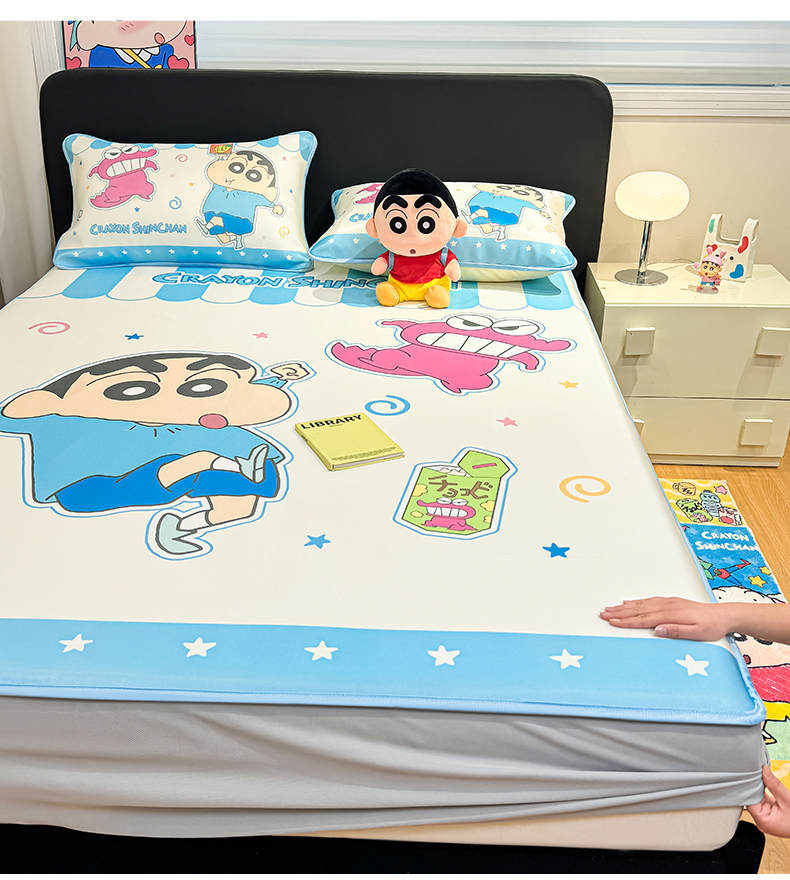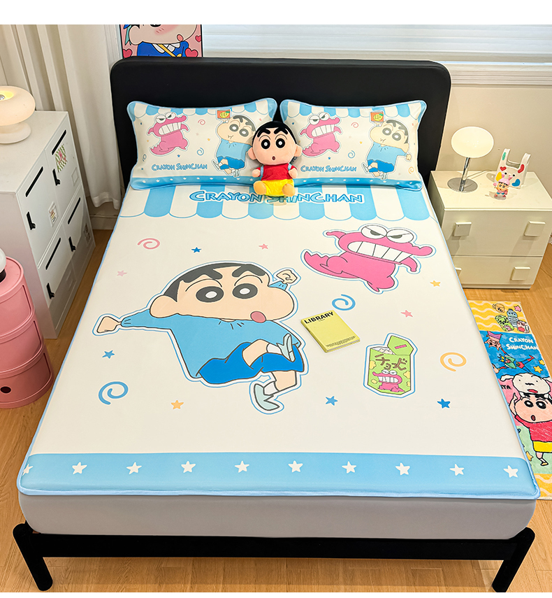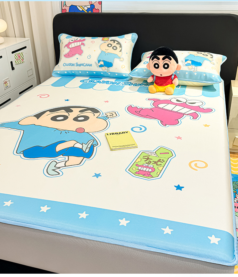 • 91家纺网 家纺一手货源 找家纺 博雅 2026蜡笔小新正版授权小冰皮大版印花凉席床笠款 大版-鳄鱼山小新