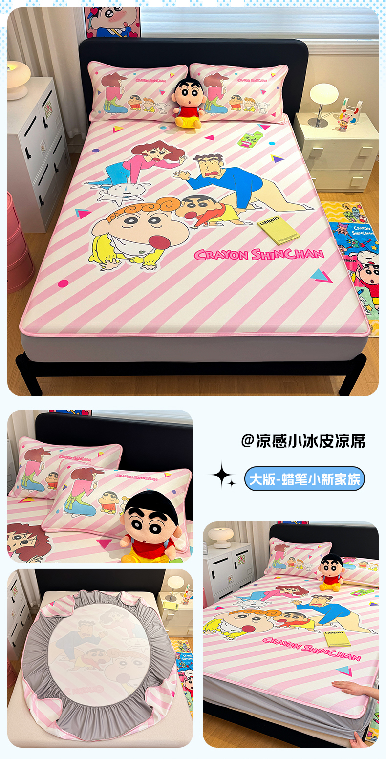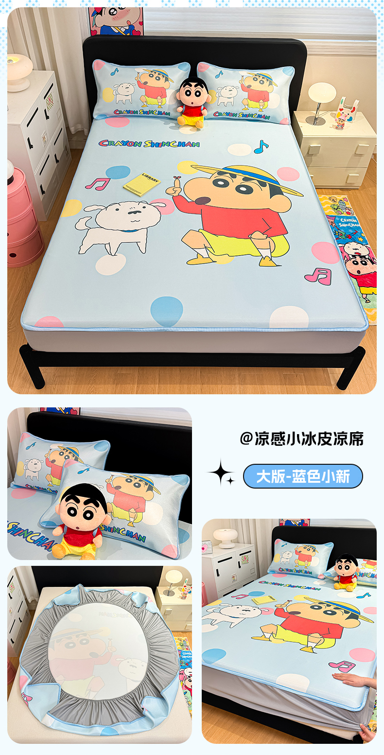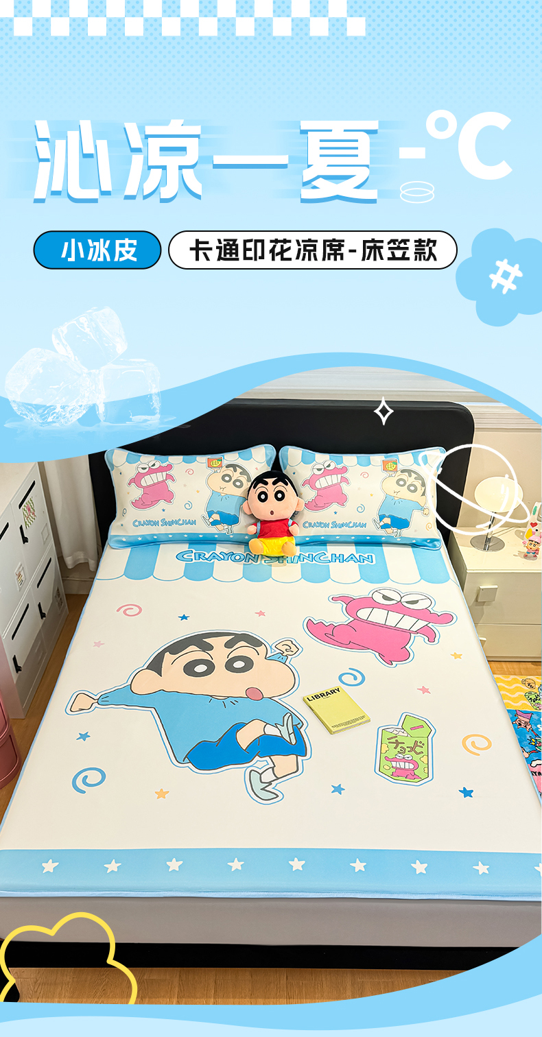 (总)博雅 2026蜡笔小新正版授权小冰皮大版印花凉席床笠款,大版-鳄鱼山小新,大版-蜡笔小新家族,大版-蓝色小新,大版-奶白格子小新,大版-睡衣小新,大版-童趣小新