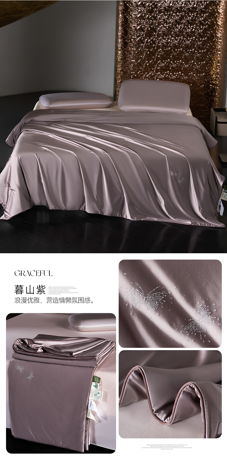 商品名称:桂雅居 2026新款珍妮莎纤凉野蚕丝被夏被空调被夏凉被 暮山紫(最低控价:298起(券后价) 充值会员价-10)