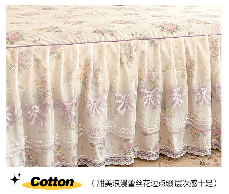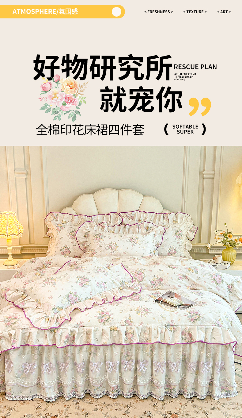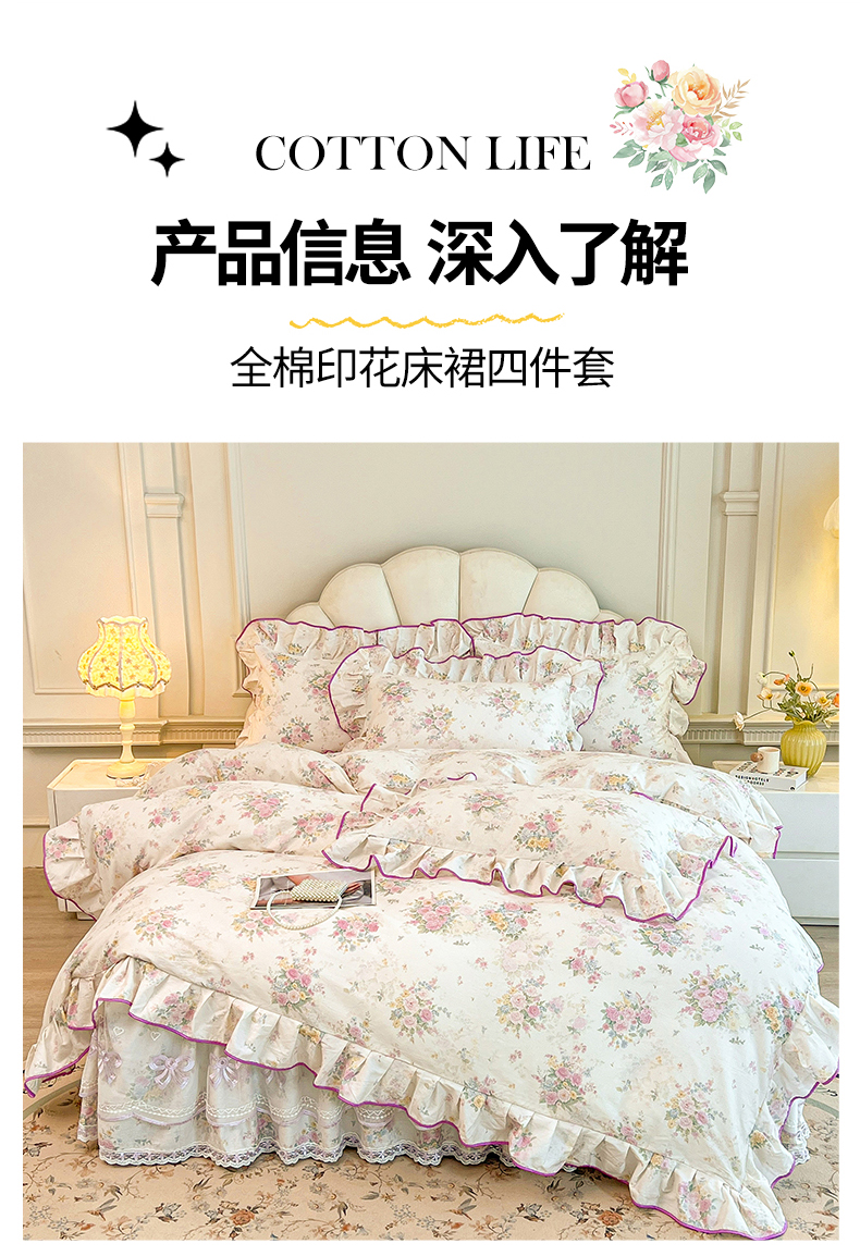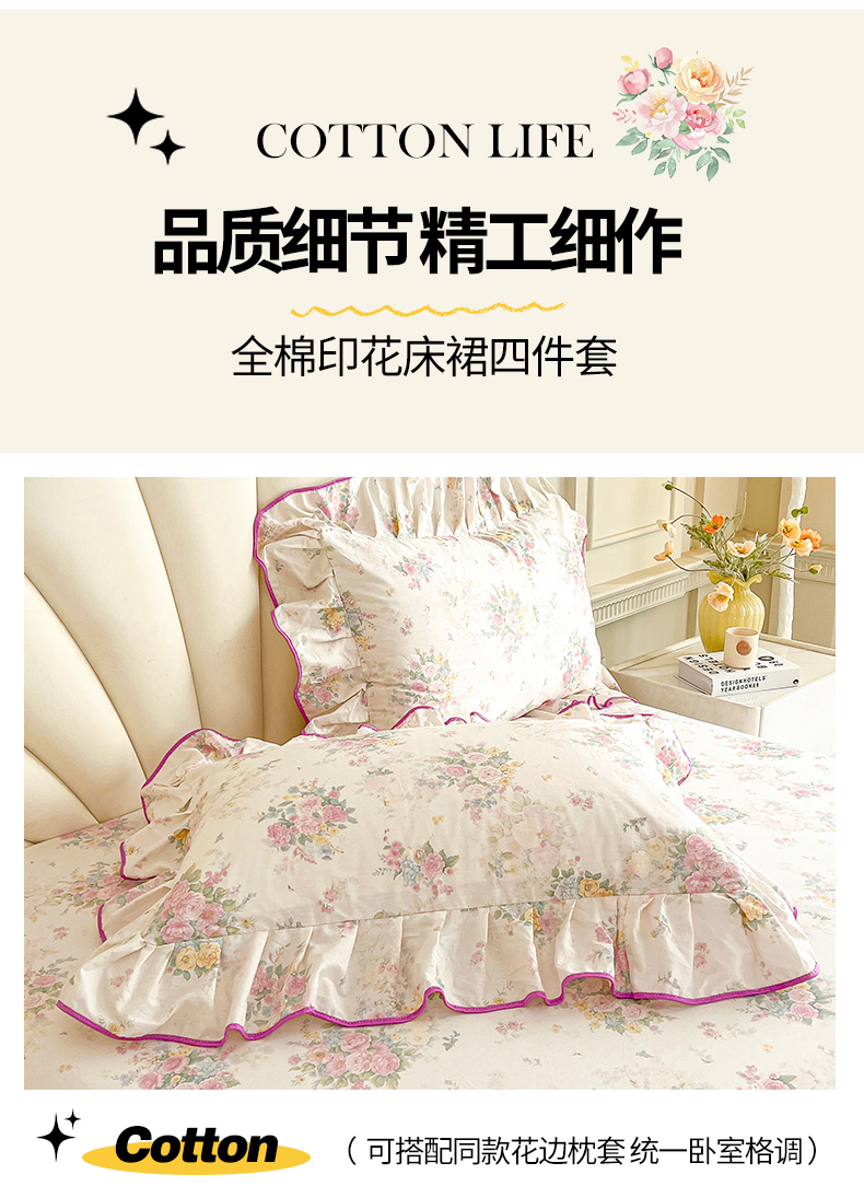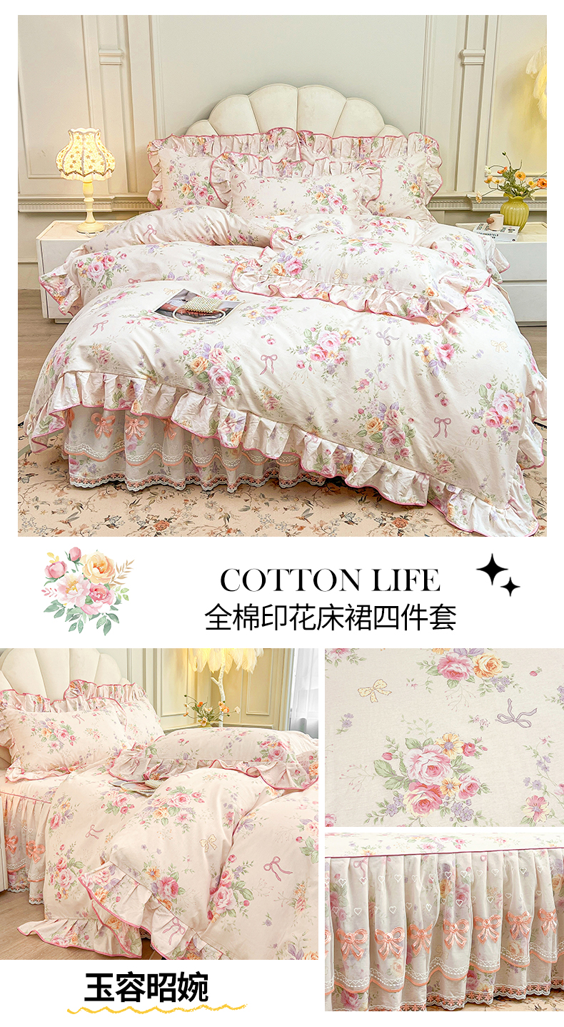 当前位置: 91家纺网 > 商品网购 > 床品套件 > 四件套 > 全棉普通四件套 > 宜凡家纺 2026新款全棉公主风单层床裙四件套 镜花映月