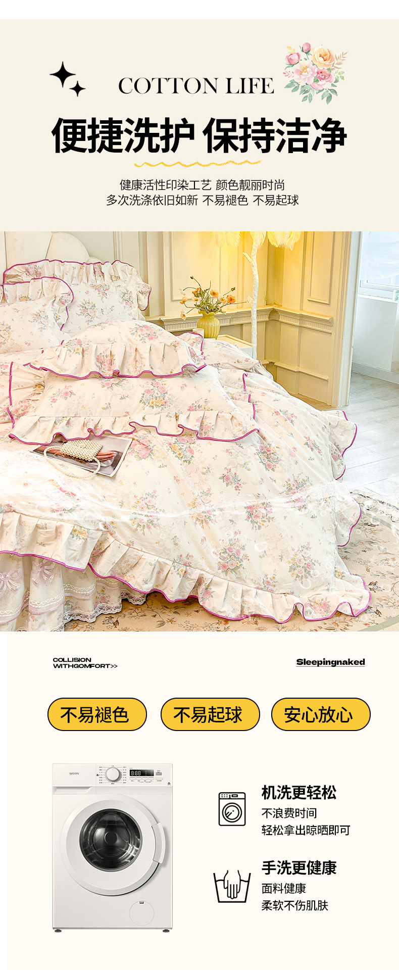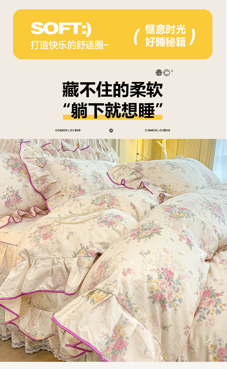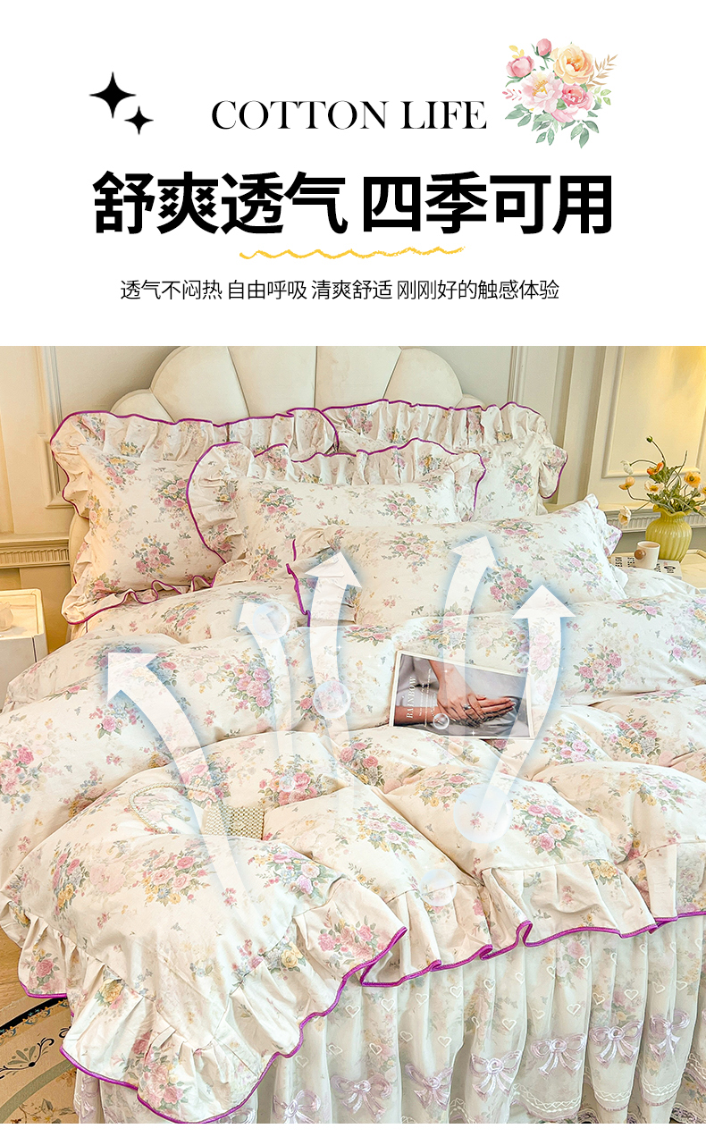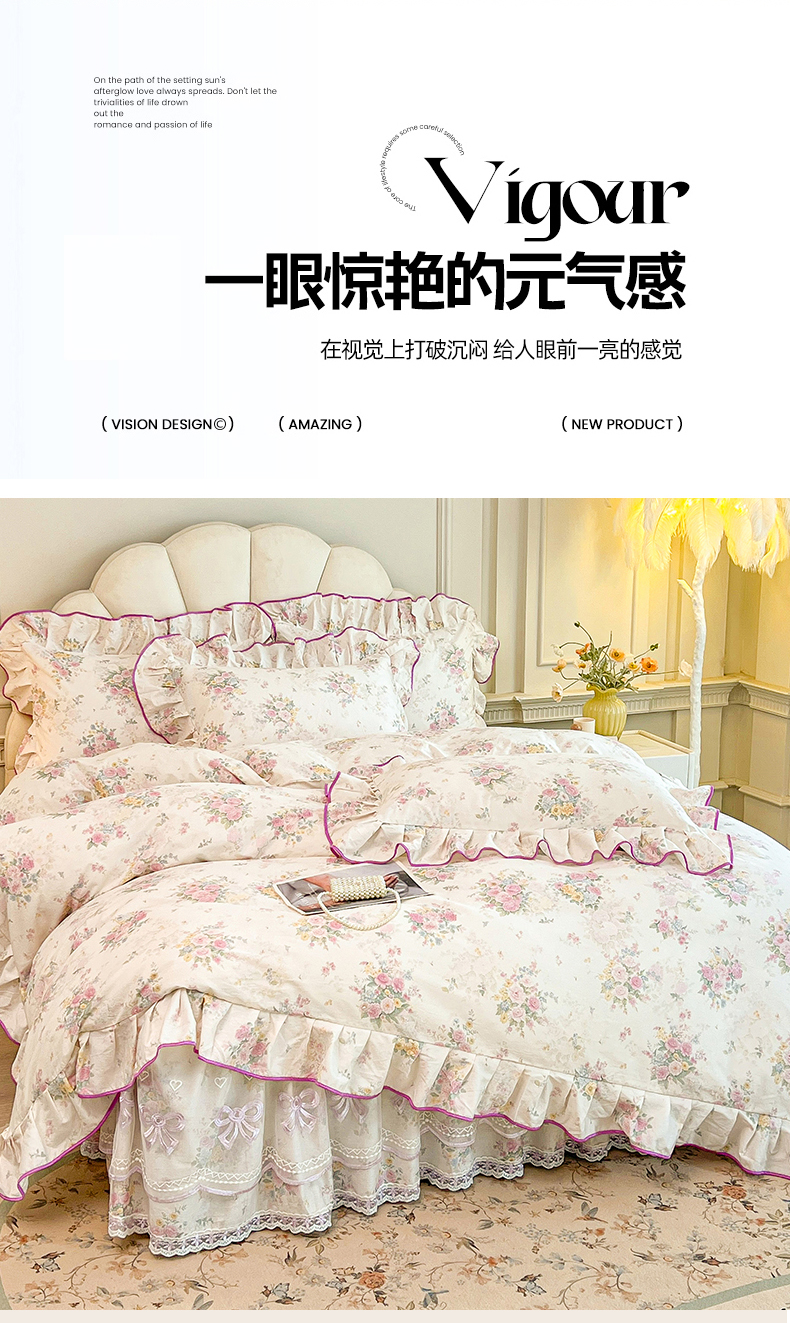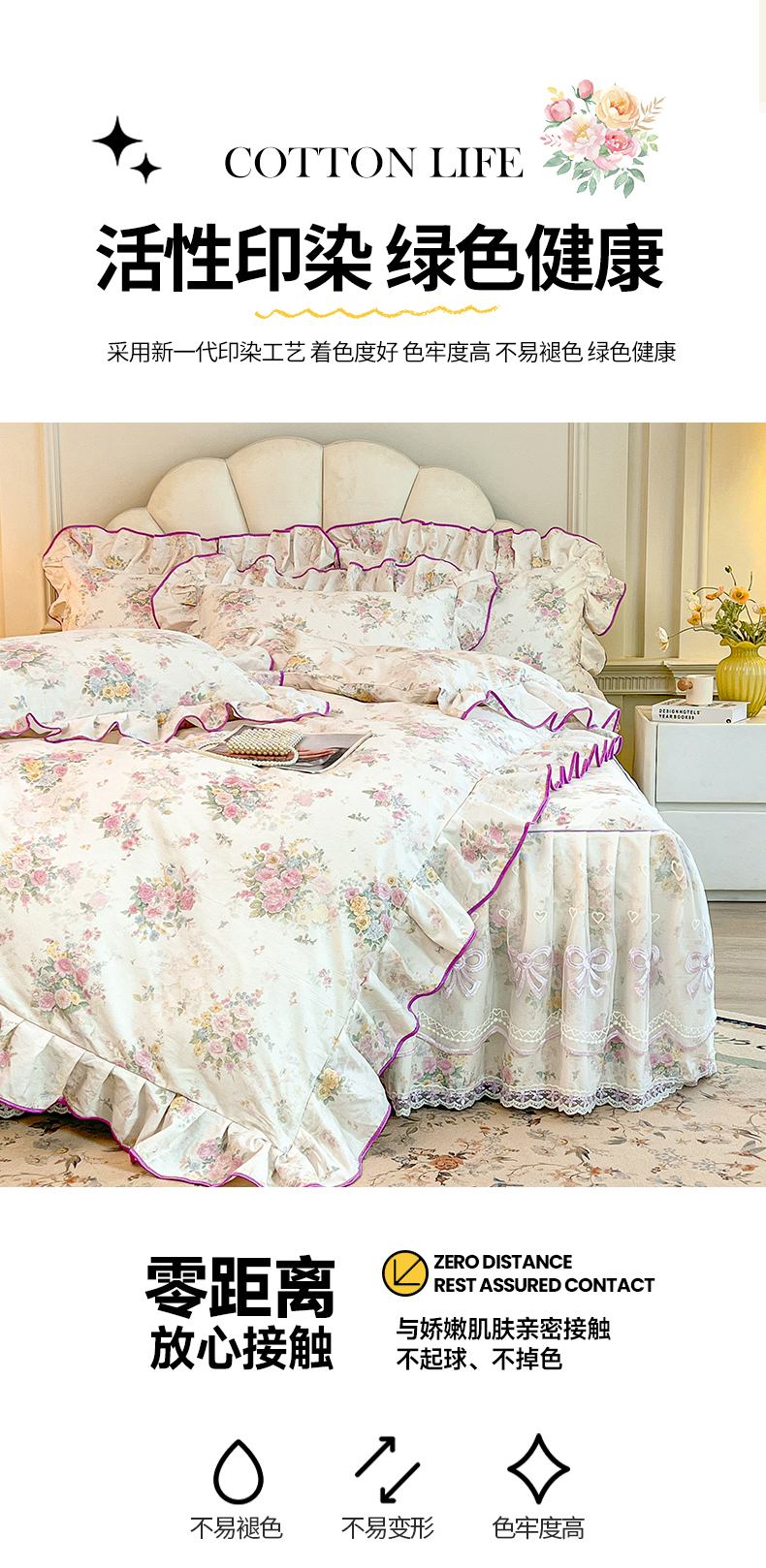 当前位置: 91家纺网 > 商品网购 > 床品套件 > 四件套 > 全棉普通四件套 > 宜凡家纺 2026新款全棉公主风单层床裙四件套 镜花映月
