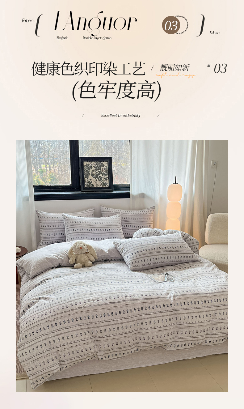 当前位置: 91家纺网 > 商品网购 > 床品套件 > 四件套 > 其它四件套 > 蓝极人 2026新款色织水洗麻印花四件套 费尔岛灰