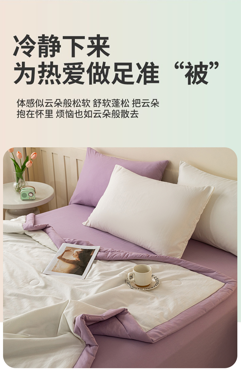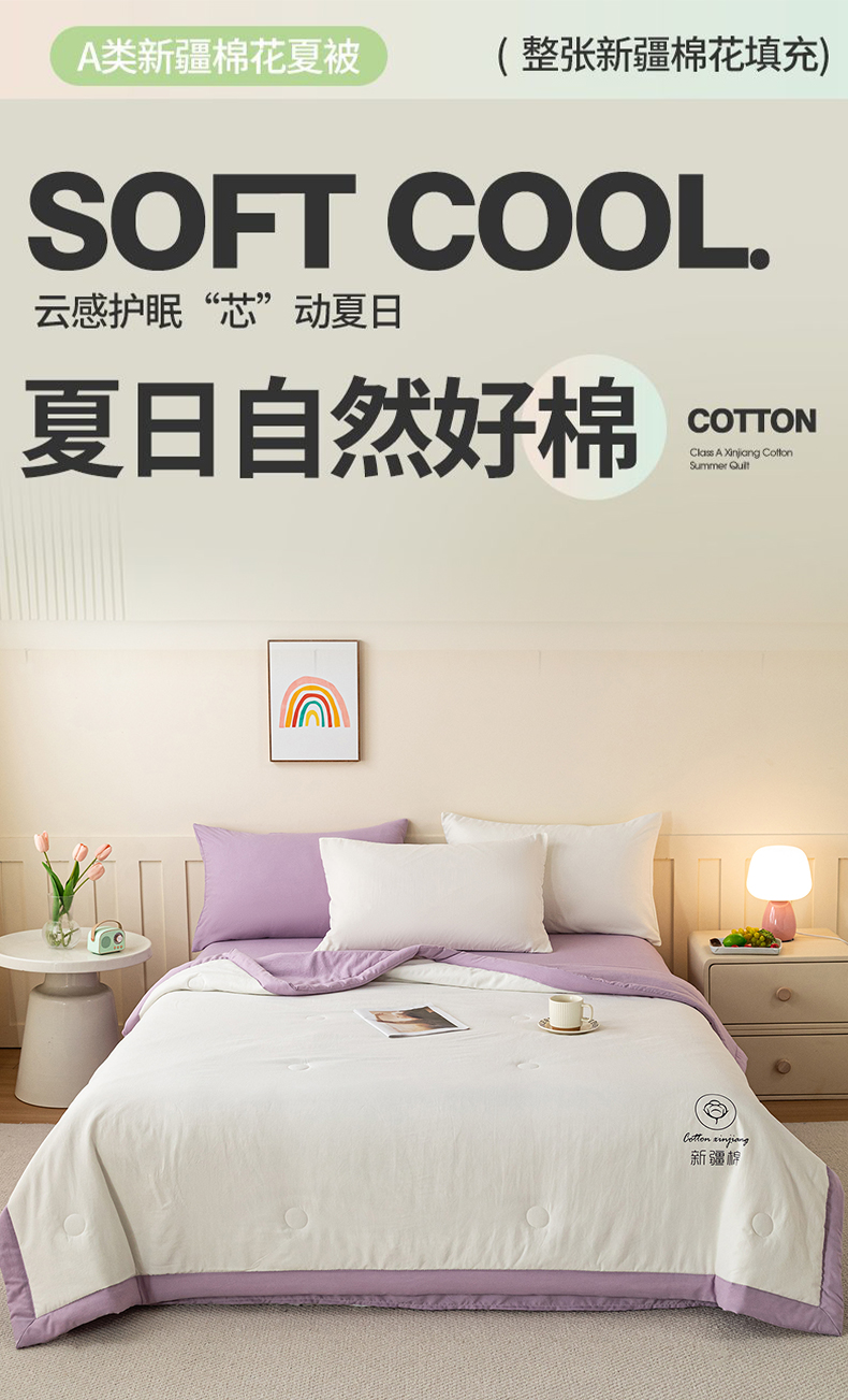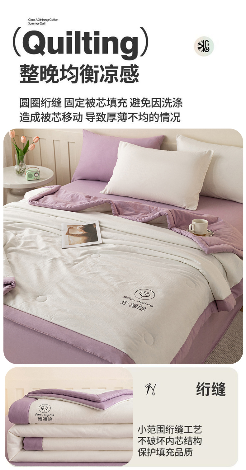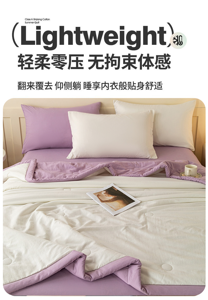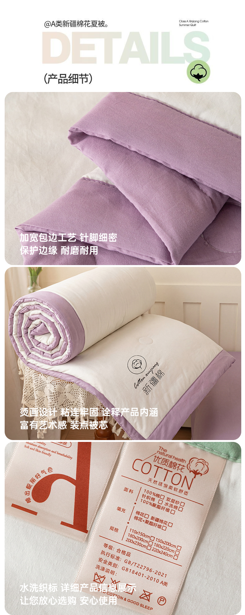 商品名称:几禾 2026春夏新款纯色水洗棉双拼夏被新疆棉花被夏凉被空调被被子被芯 双拼-白紫