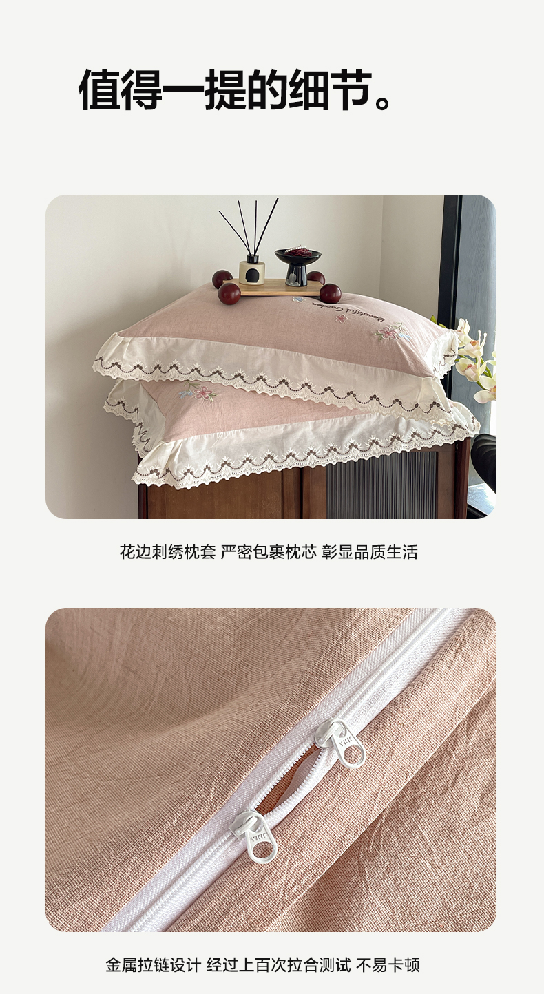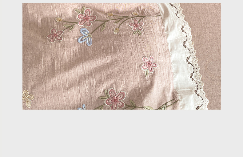 商品名称:如一 2026新款棉麻绣花花边款全棉亚麻四件套 花间-粉