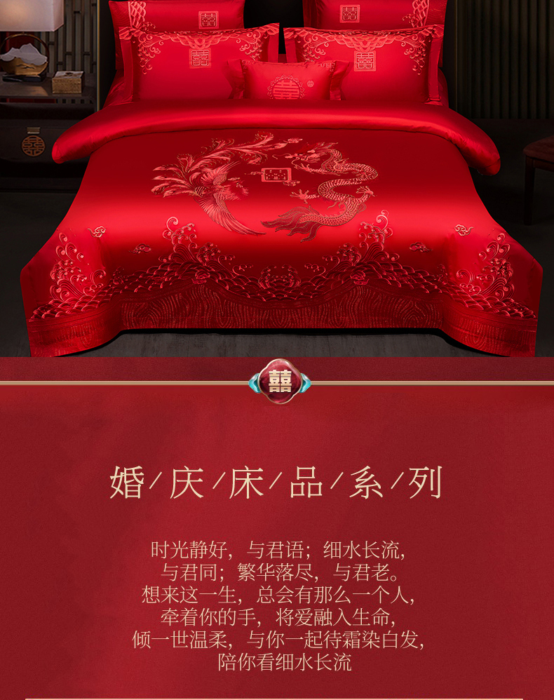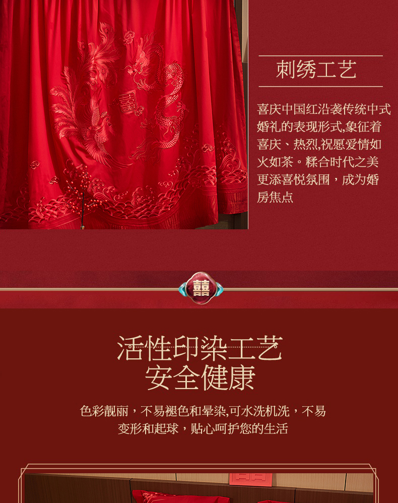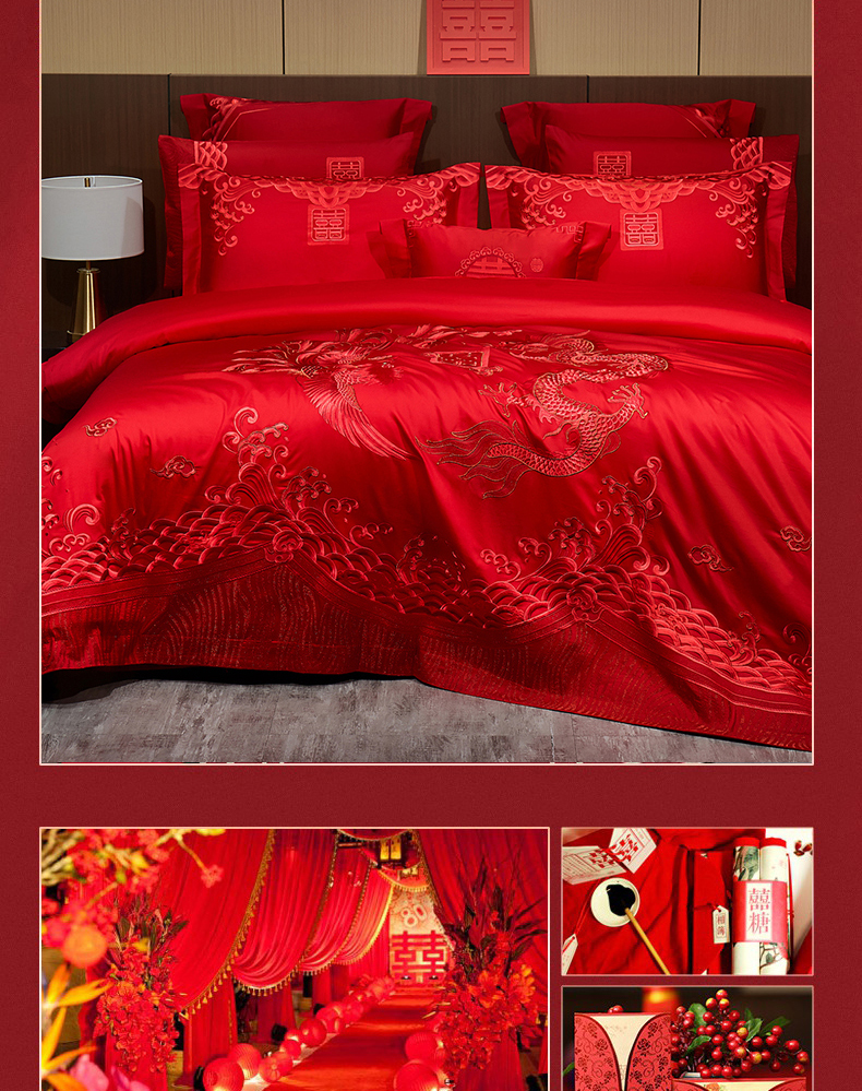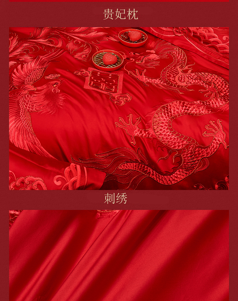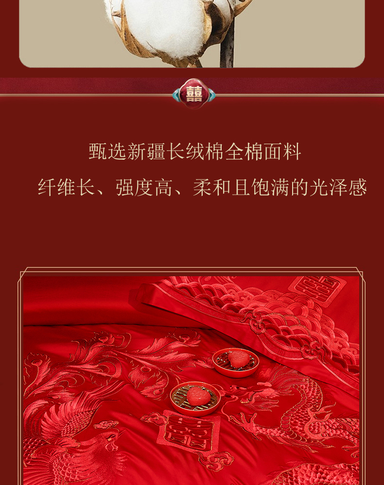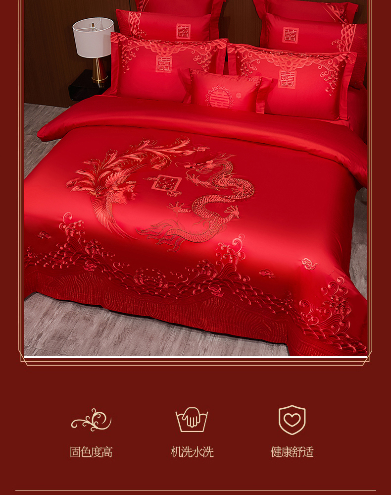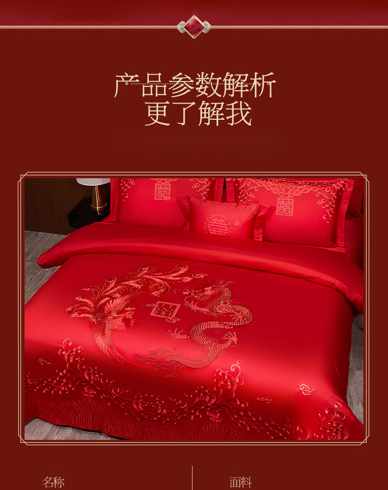 当前位置: 91家纺网 > 商品网购 > 床品套件 > 四件套 > 婚庆四件套 > 蒂爵 2026婚庆新疆长绒棉纯棉原版大绣花婚庆四件套多件套340系列 龙凤王朝红