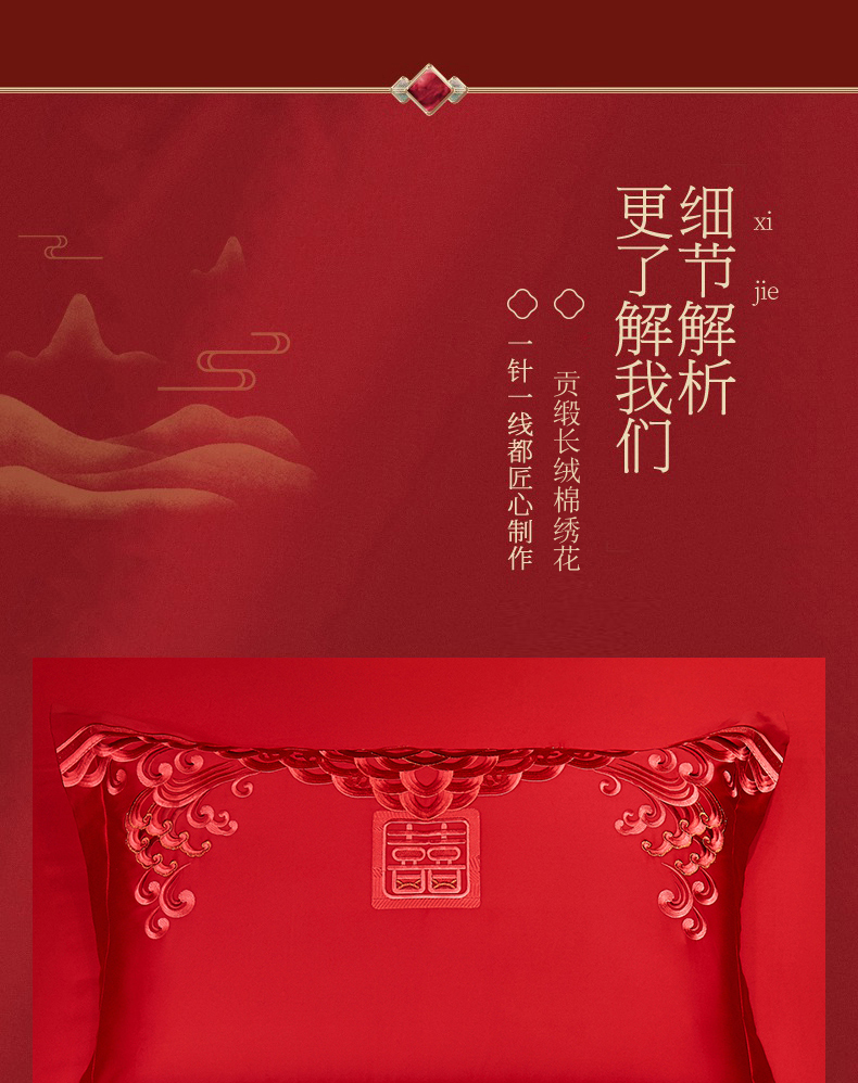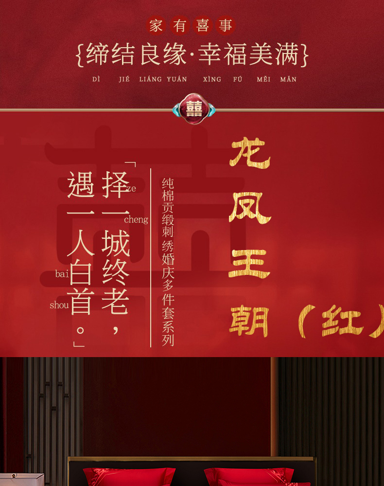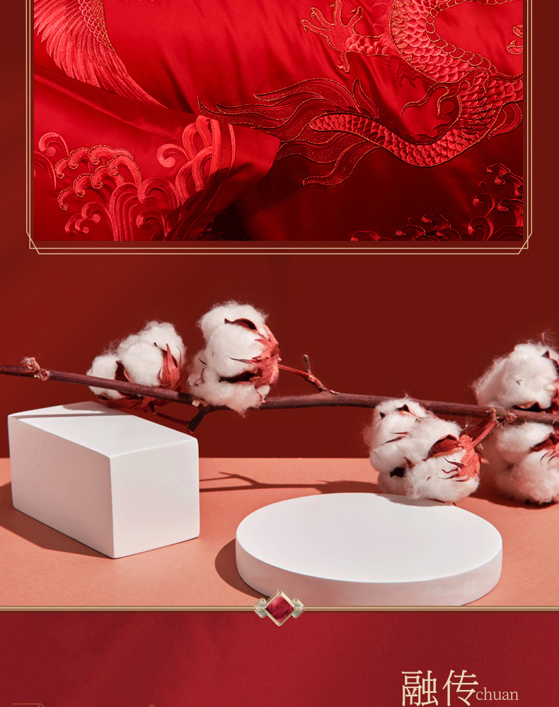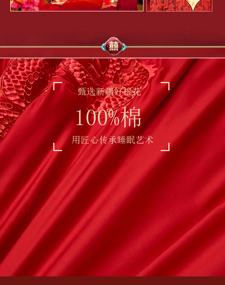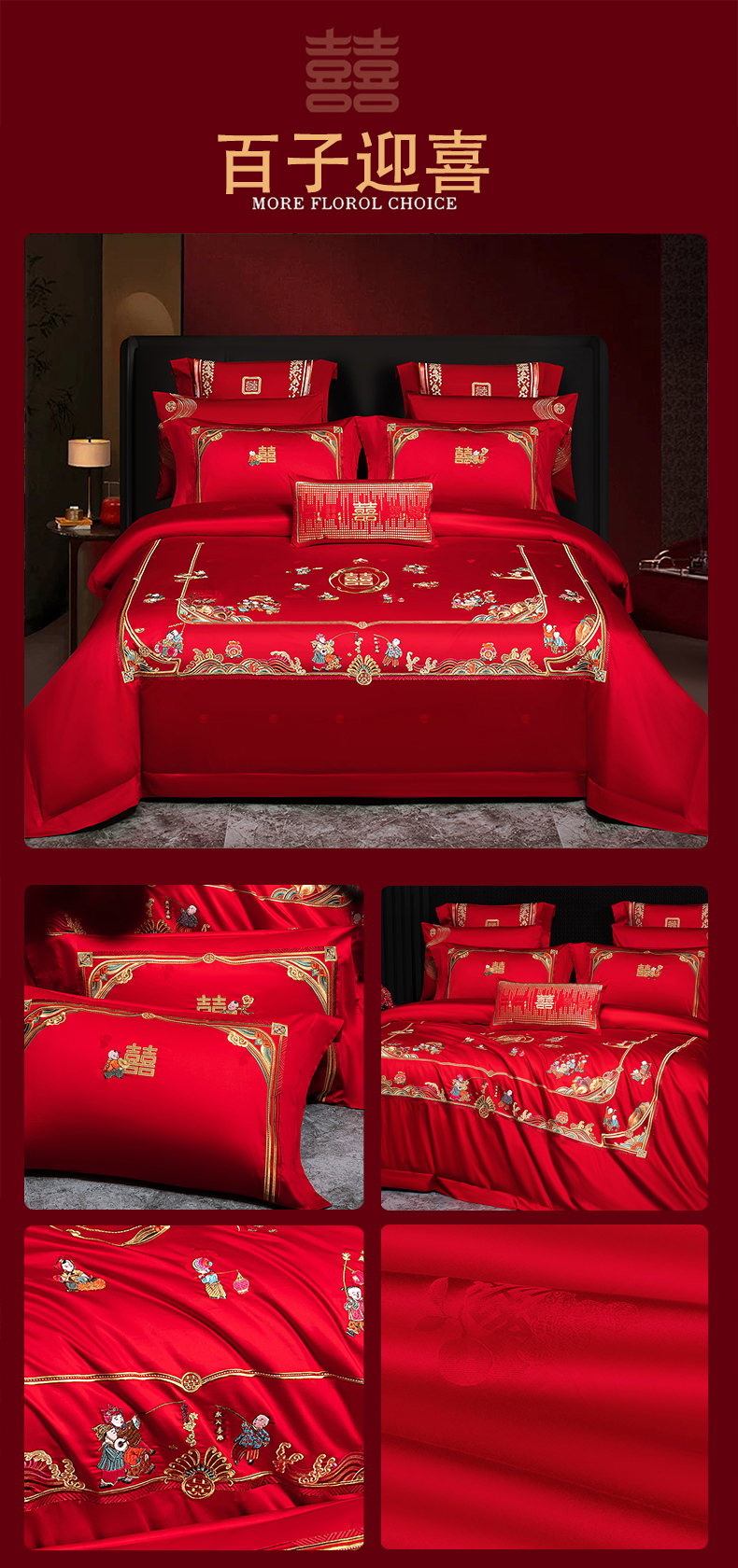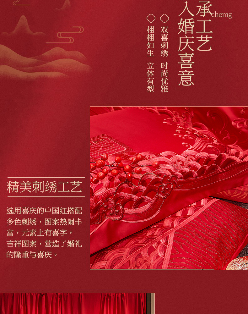当前位置: 91家纺网 > 商品网购 > 床品套件 > 四件套 > 婚庆四件套 > 蒂爵 2026婚庆新疆长绒棉纯棉原版大绣花婚庆四件套多件套340系列 龙凤王朝红