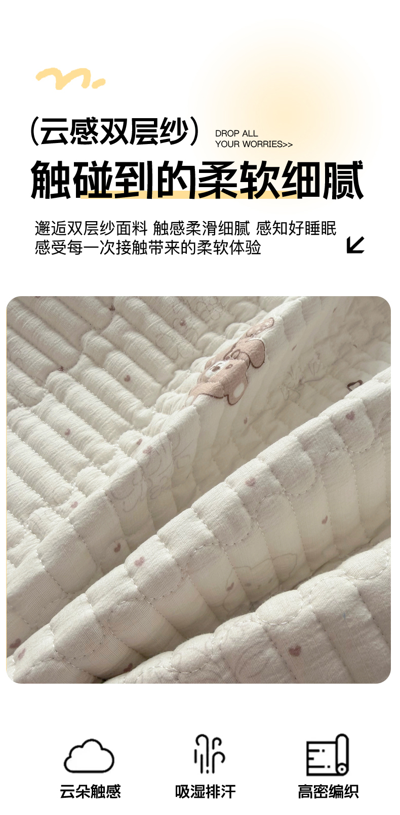 • 91家纺网 家纺一手货源 找家纺 悠米悠家 2026春夏新款木棉双层纱单床盖 床盖单件 可可萌熊