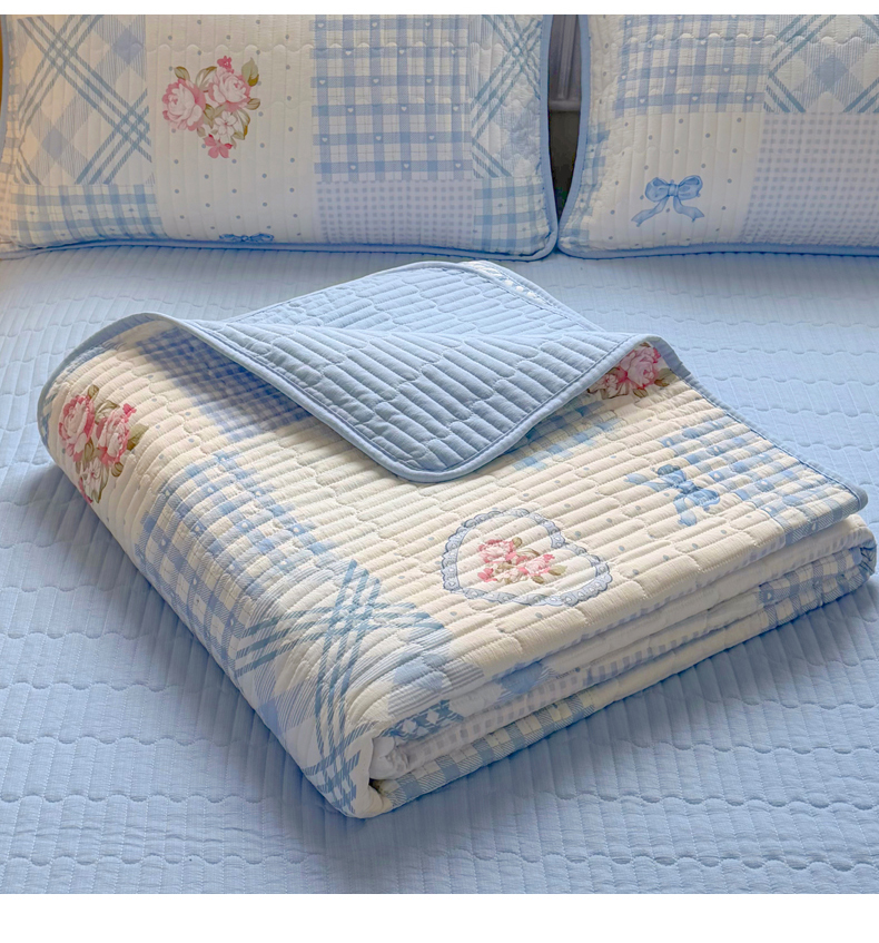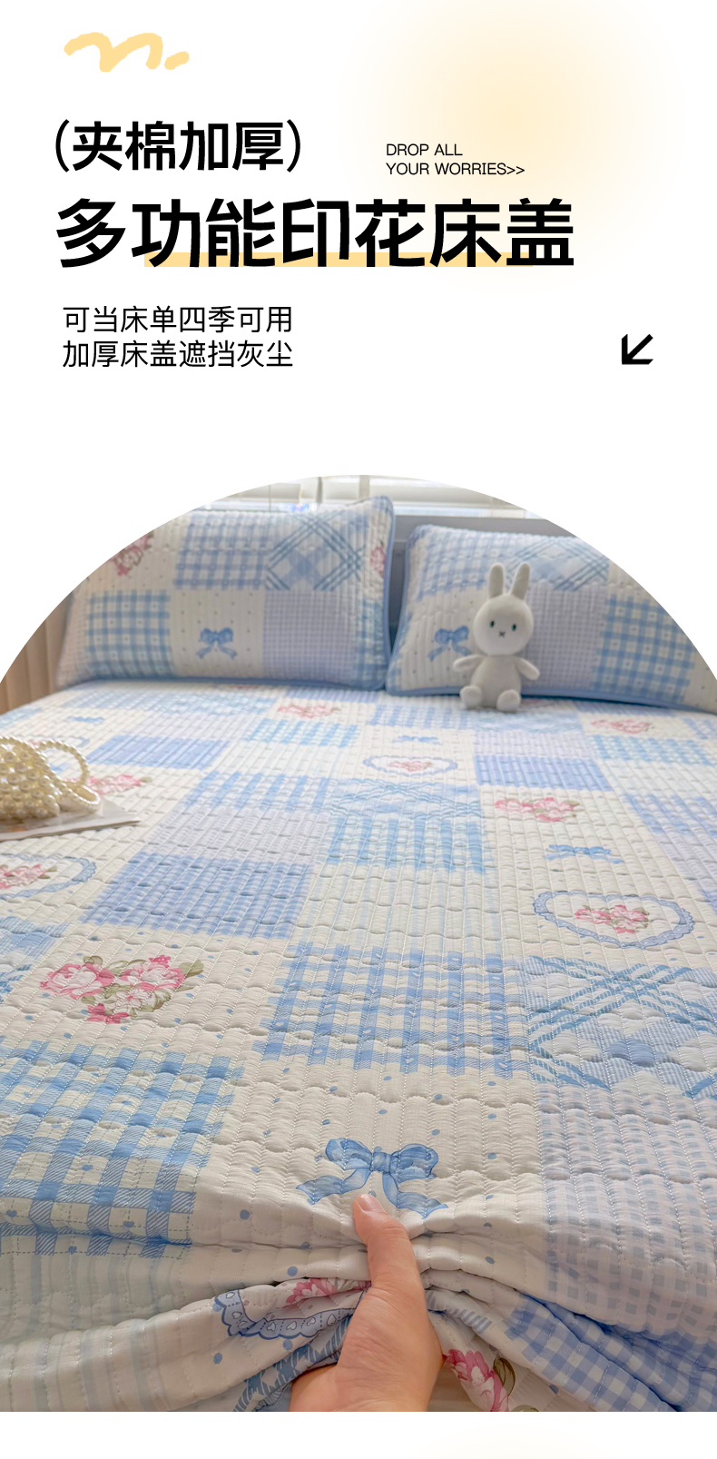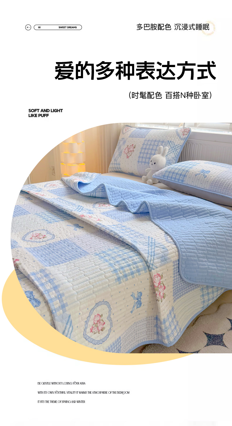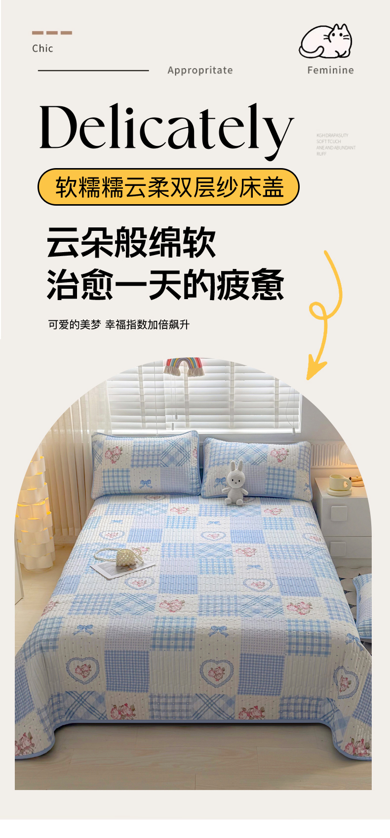 • 91家纺网 家纺一手货源 找家纺 悠米悠家 2026春夏新款木棉双层纱单床盖 床盖单件 海盐甜玫梦