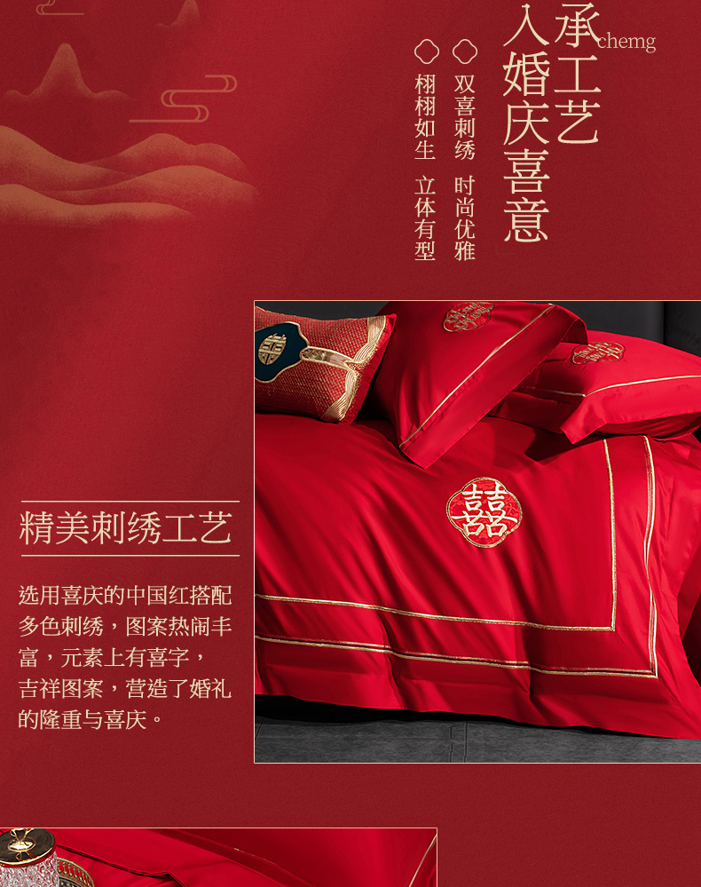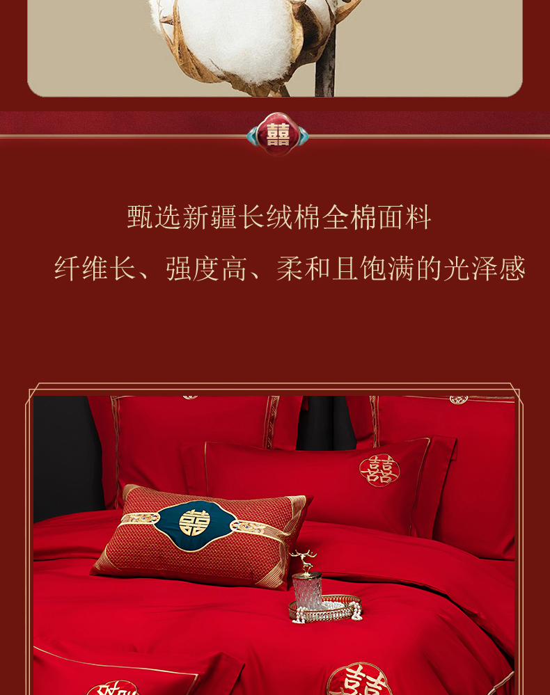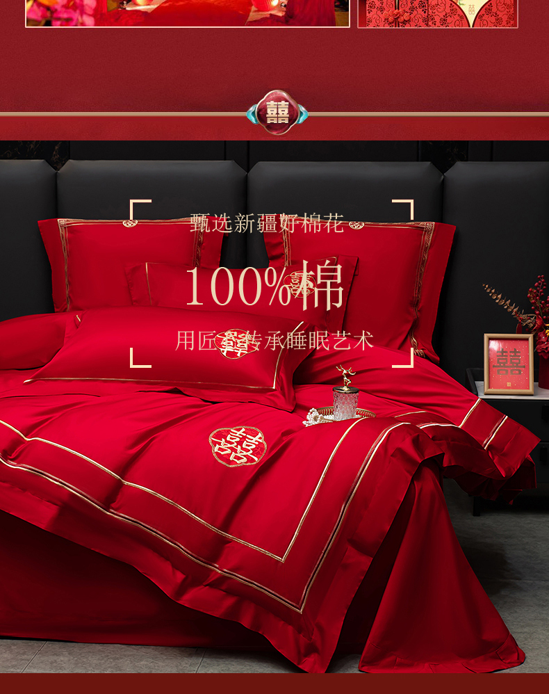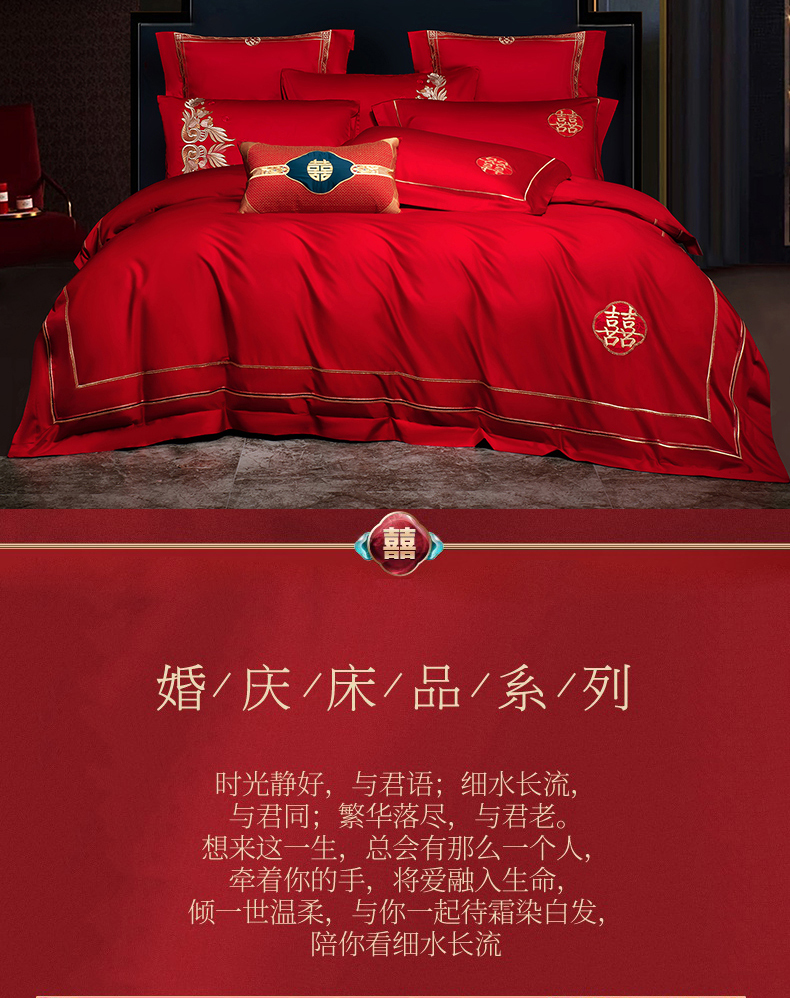 当前位置: 91家纺网 > 商品网购 > 床品套件 > 四件套 > 婚庆四件套 > 蒂爵 2026年100支婚庆长绒棉纯棉时尚小红书爆款刺绣婚庆四件套多件套280系列 吉庆良缘