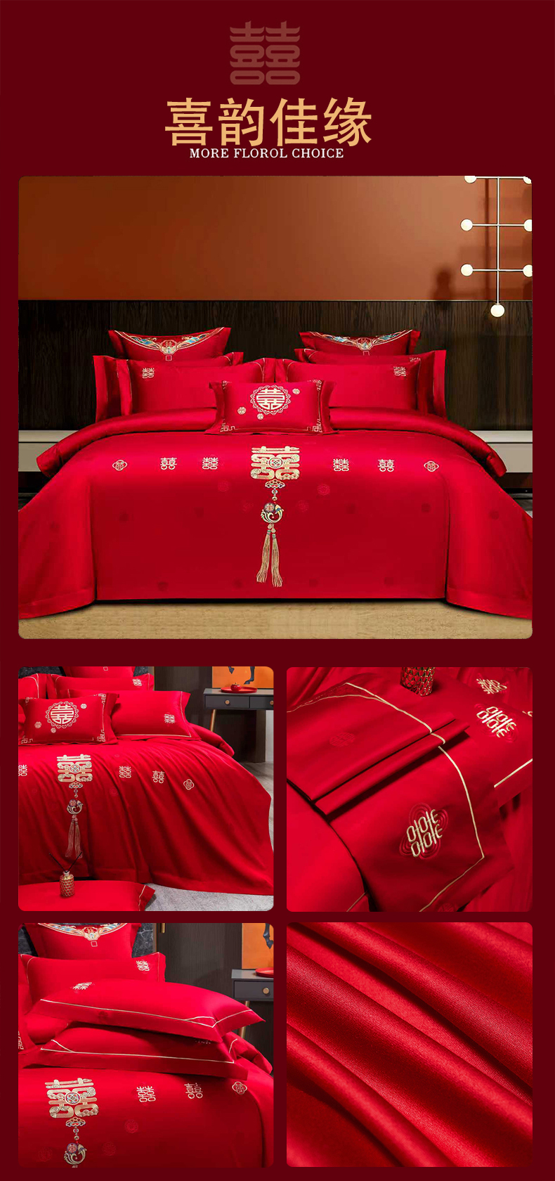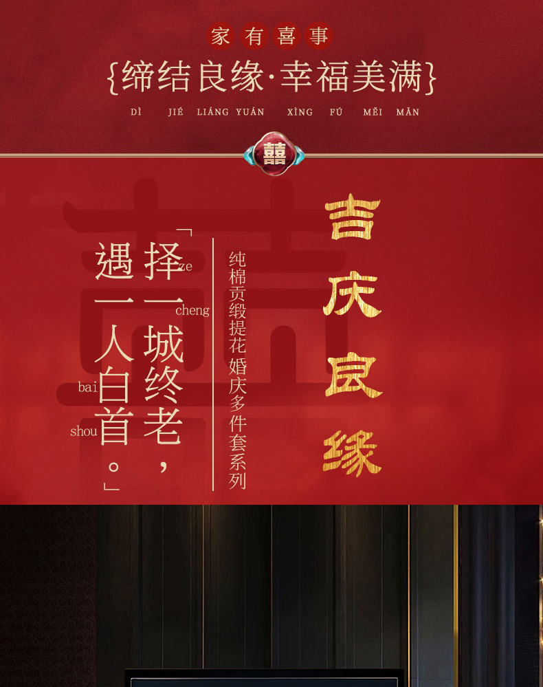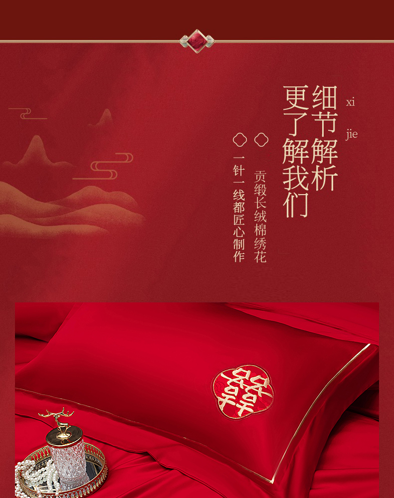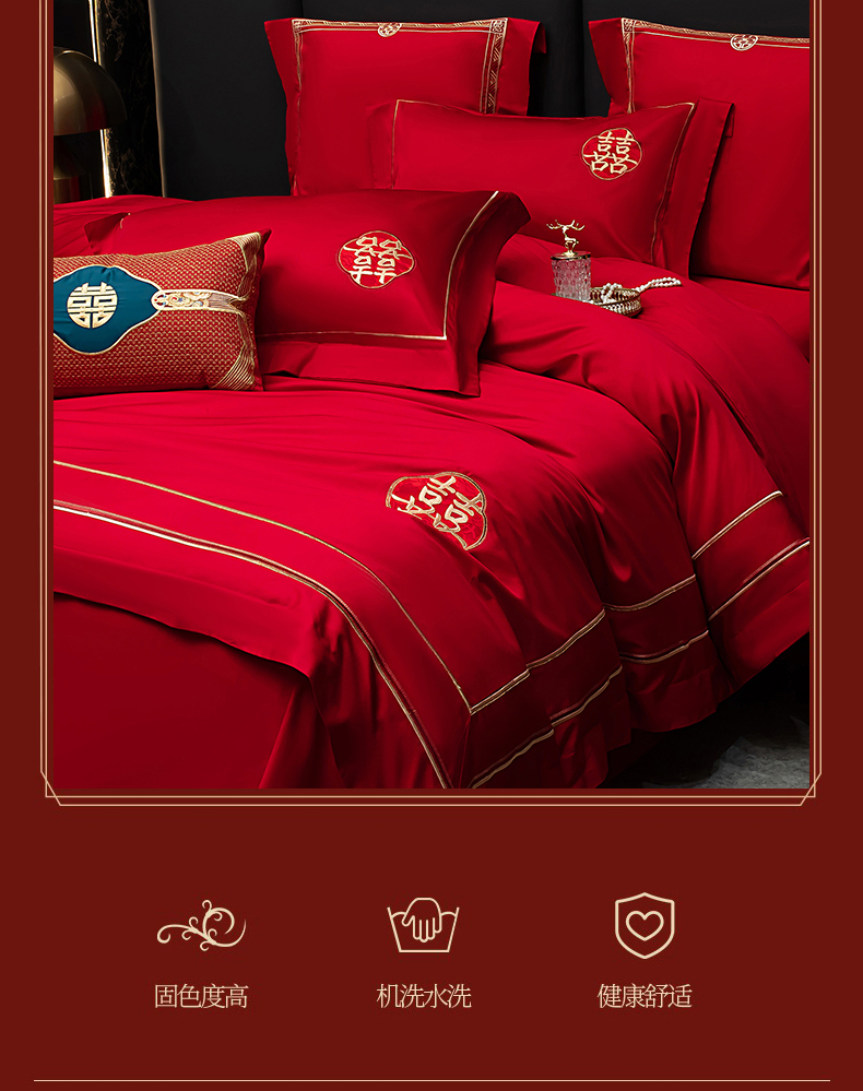 当前位置: 91家纺网 > 商品网购 > 床品套件 > 四件套 > 婚庆四件套 > 蒂爵 2026年100支婚庆长绒棉纯棉时尚小红书爆款刺绣婚庆四件套多件套280系列 吉庆良缘