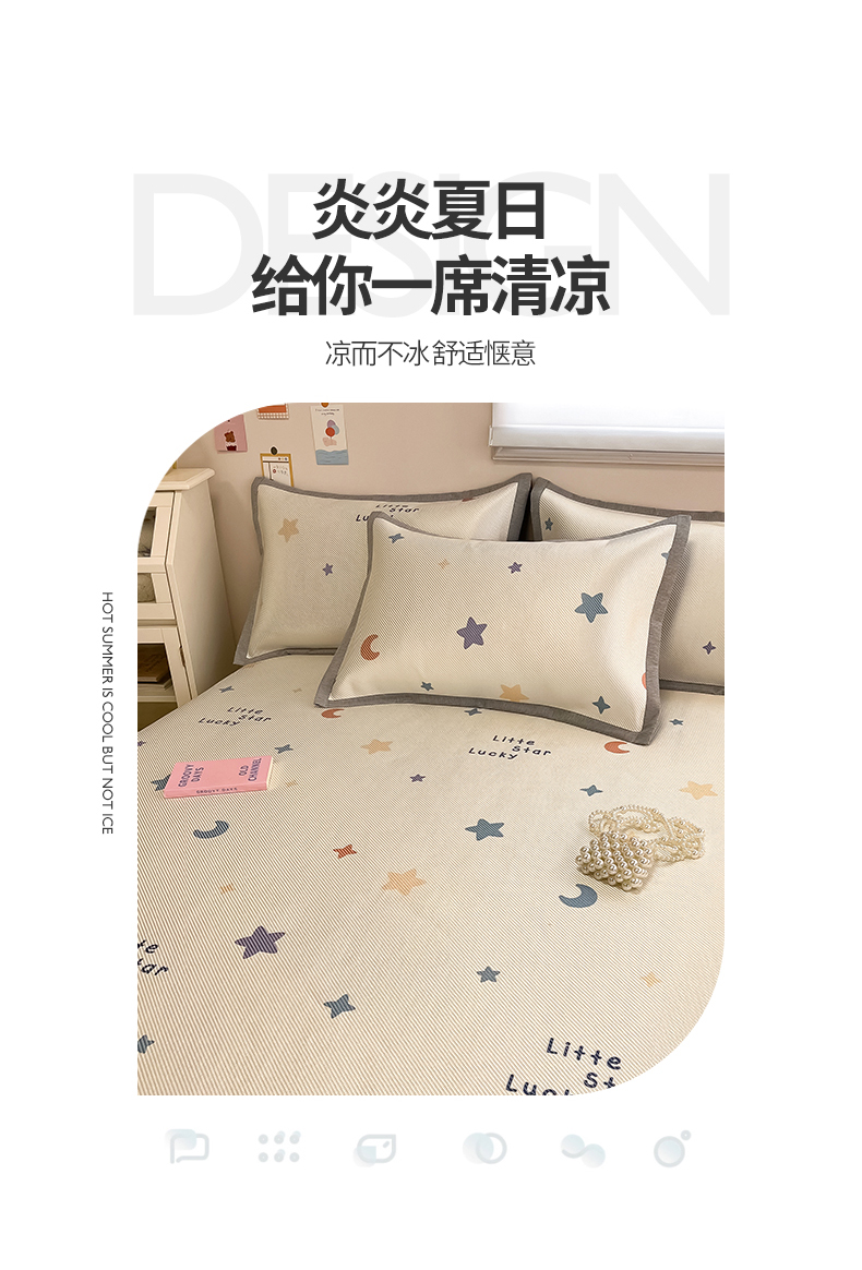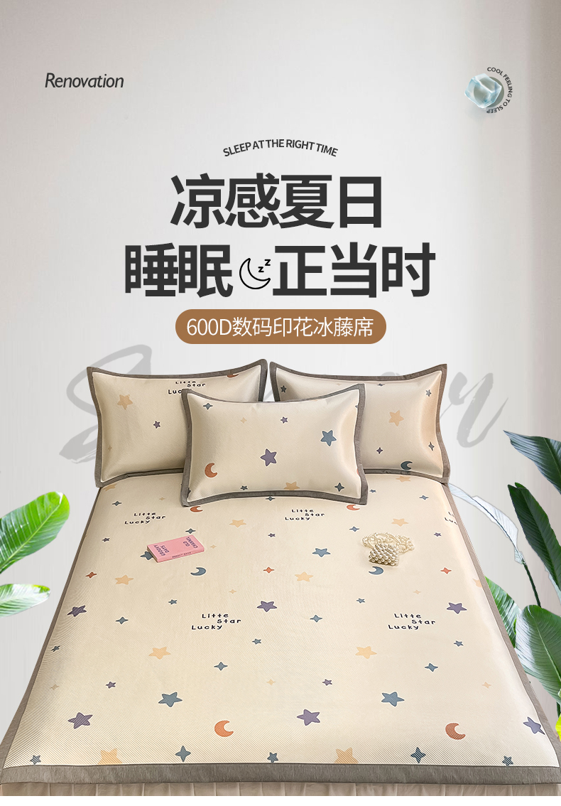 懒猫家纺 2026春夏新款600D数码印花冰藤凉席席子-床笠款 小星愿