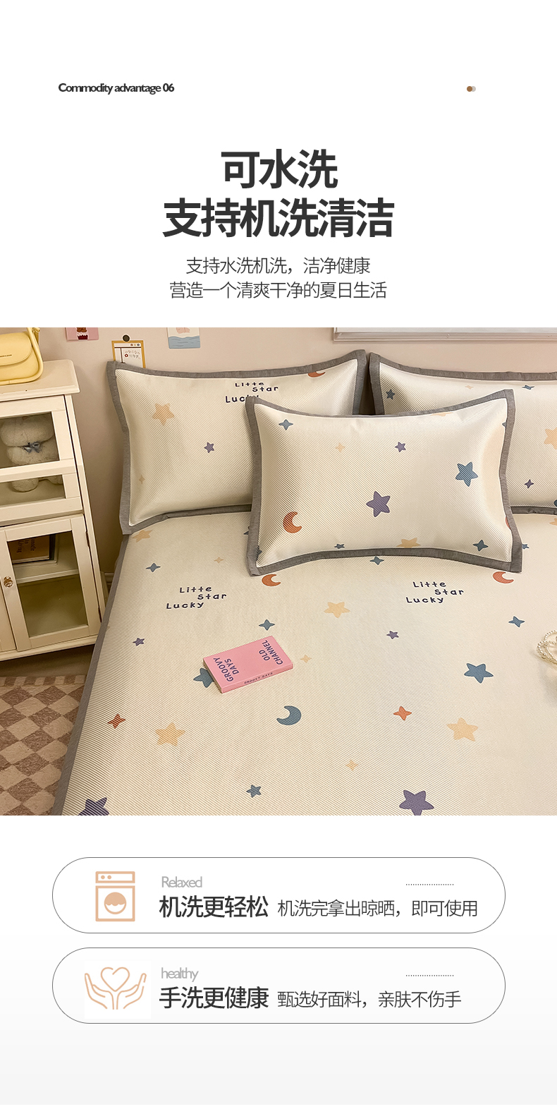 商品名称:懒猫家纺 2026春夏新款600D数码印花冰藤凉席席子-床笠款 小星愿