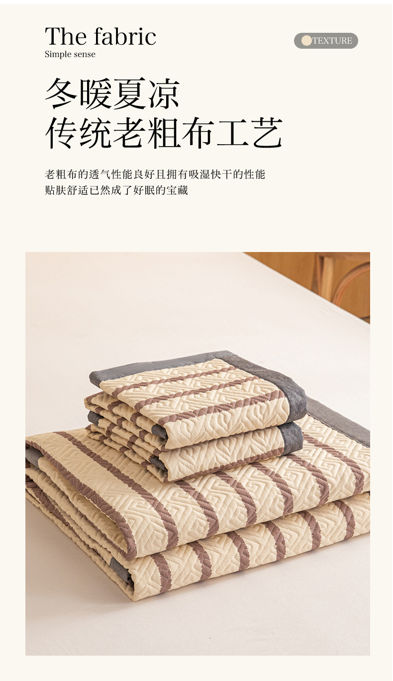 商品名称:女子家纺 2026新款宽边全棉纯棉老粗布绗缝夏季凉席席子 粗条-浅紫