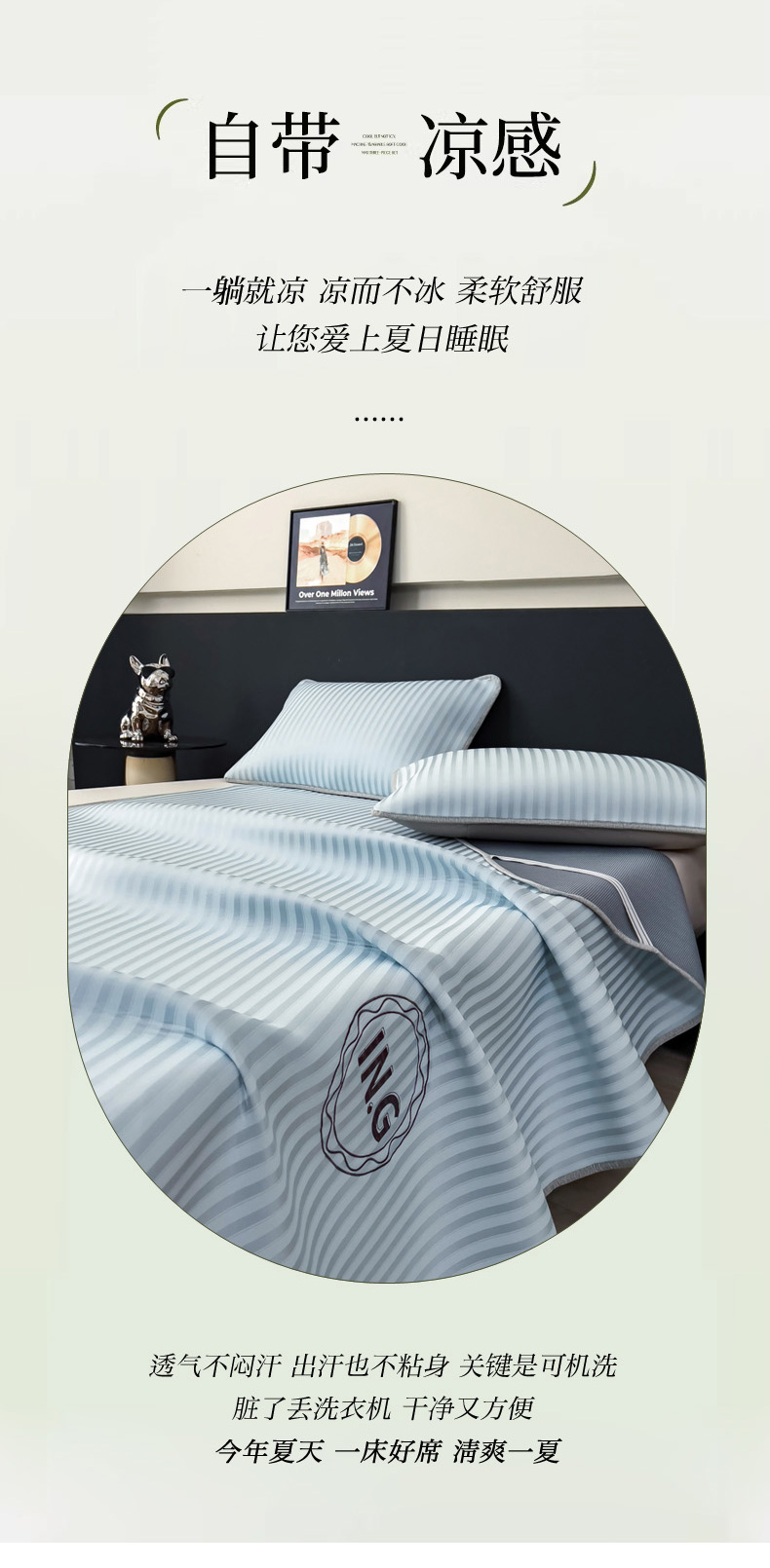 (总)印季家纺 2025新款轻奢简约凉感丝泡泡席-格调凉席,藏蓝,米黄,墨绿,浅粉,银灰