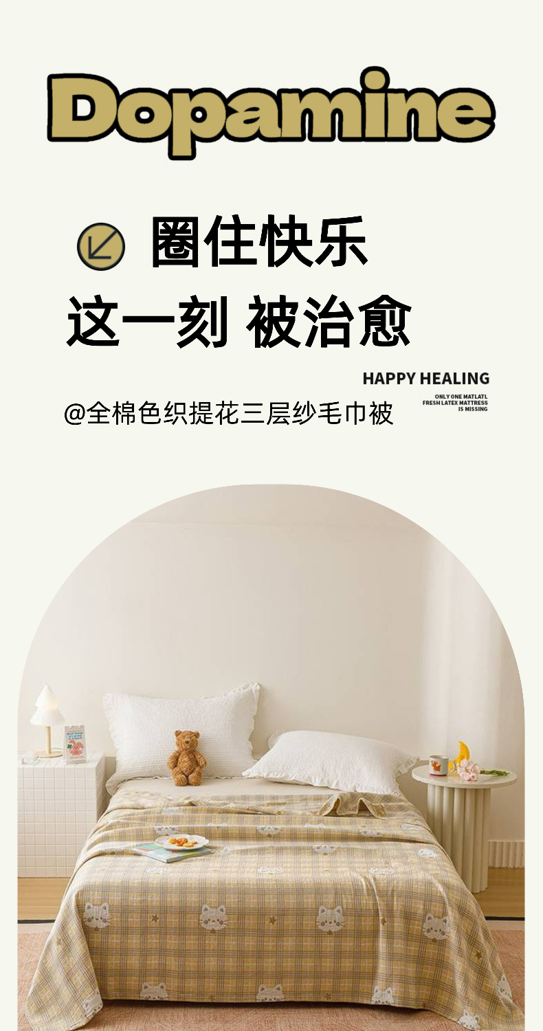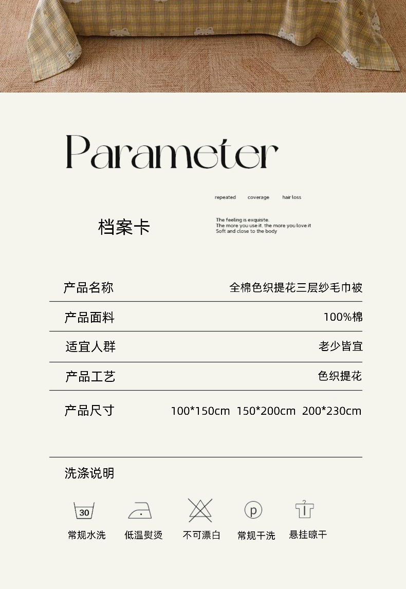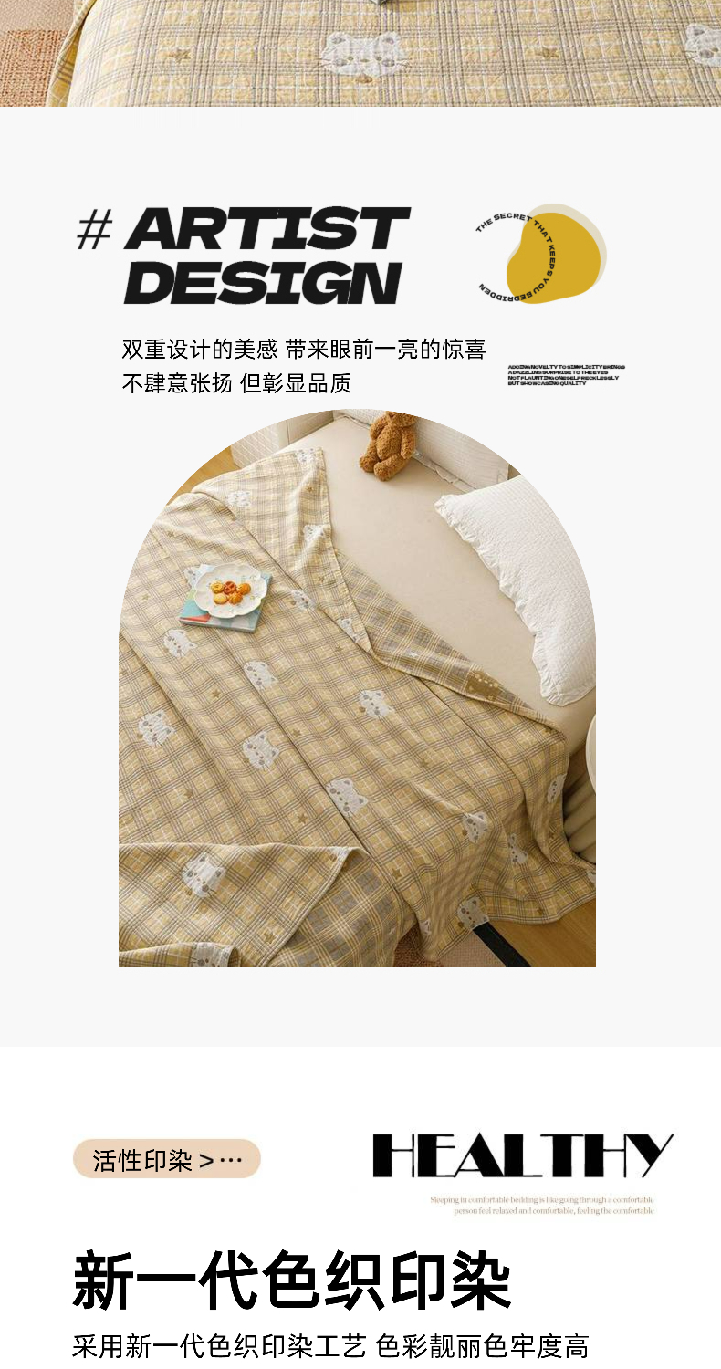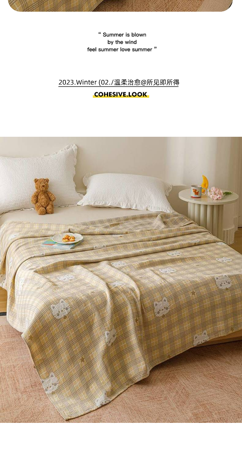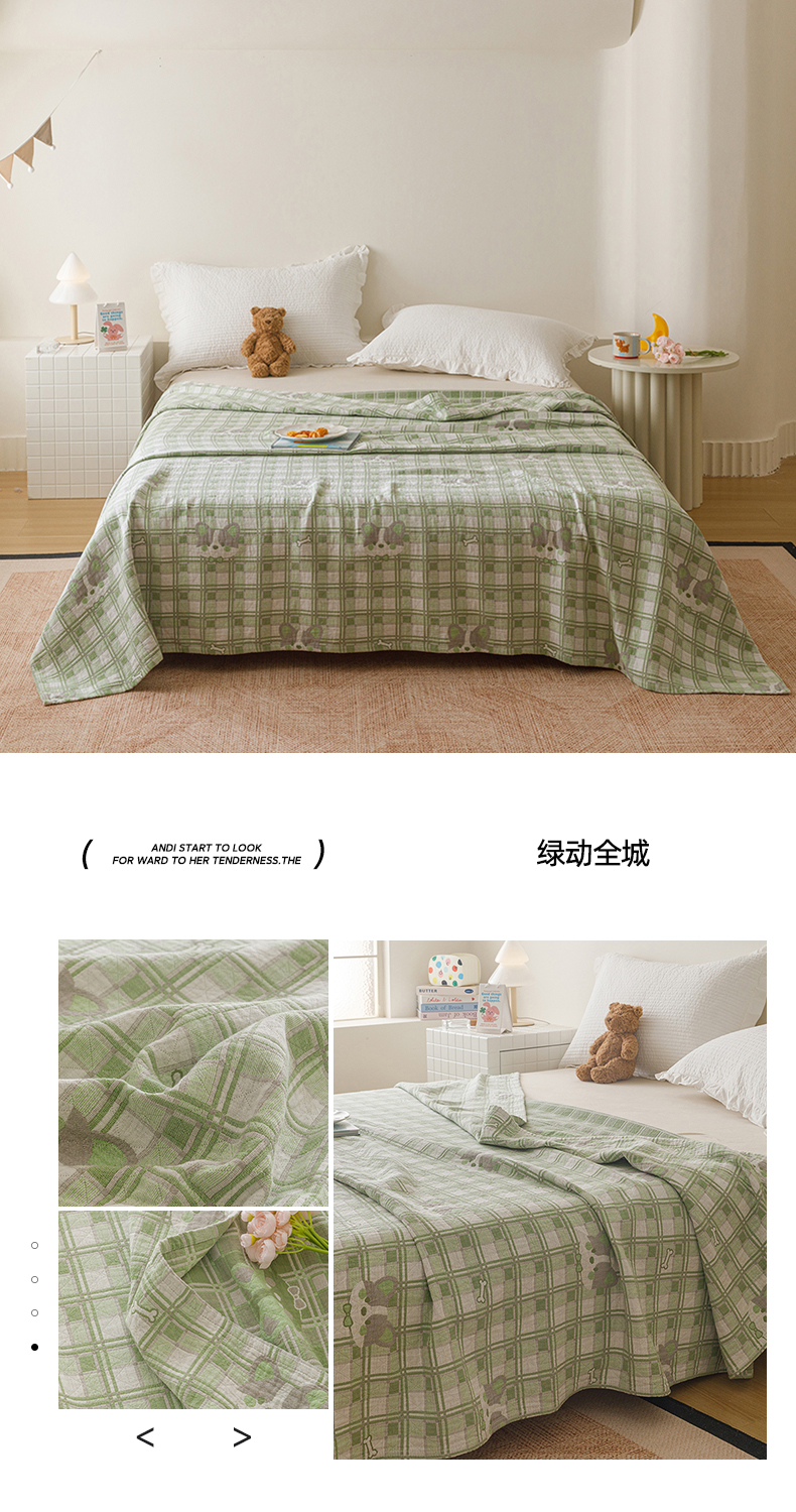 (总)悦然毛巾被 2026新款全棉纯棉三层纱布夏被毛巾被盖毯休闲色织提花卡通,暧企格语,暧运瑞猫,绿动全城,甜心兔,元气熊,组合图仅供展示不可下单