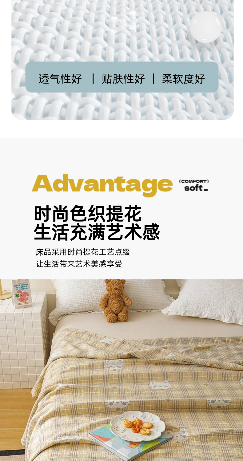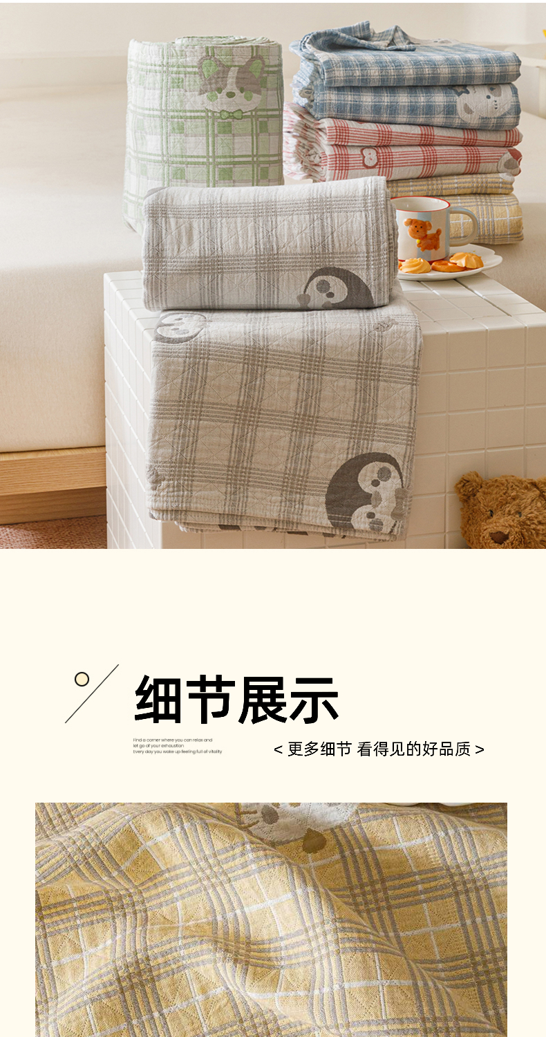 (总)悦然毛巾被 2026新款色织水洗棉盖毯安心棉床盖全棉纱布毛巾被夏被夏凉被空调被,组合图仅供展示不可下单,蓝格萌马,蓝格小狗,蓝格心语,蓝格星芒,蓝格熊语