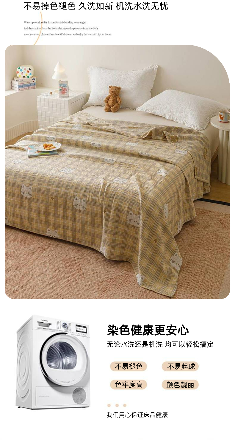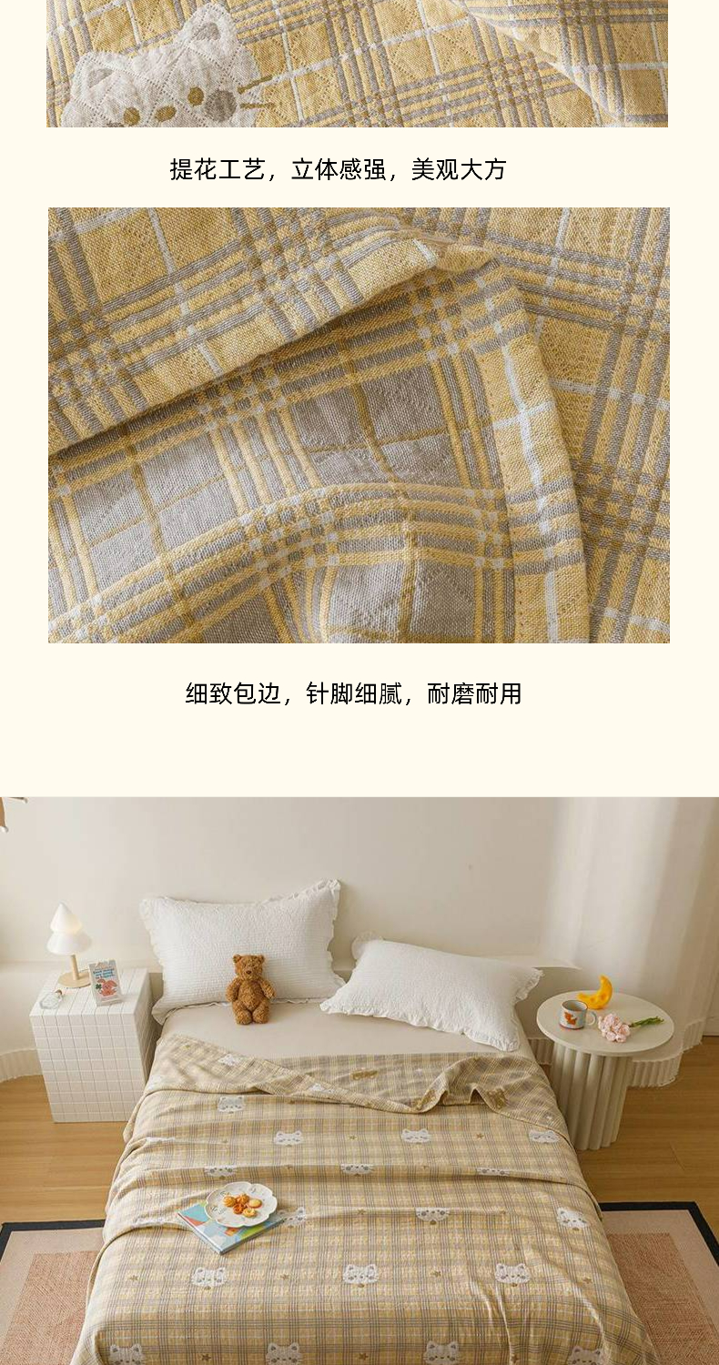 商品名称:悦然毛巾被 2026新款全棉纯棉三层纱布夏被毛巾被盖毯休闲色织提花卡通 暧运瑞猫