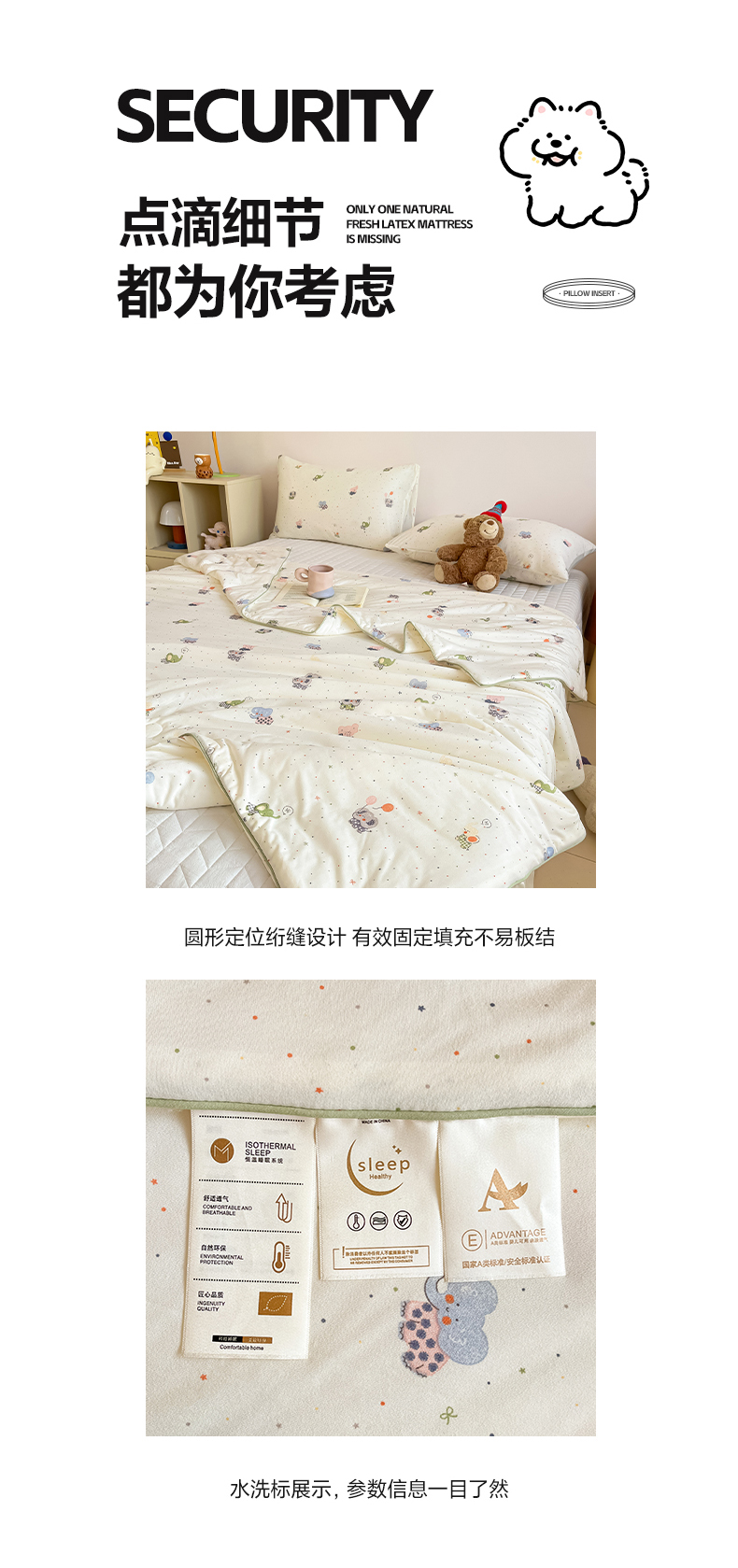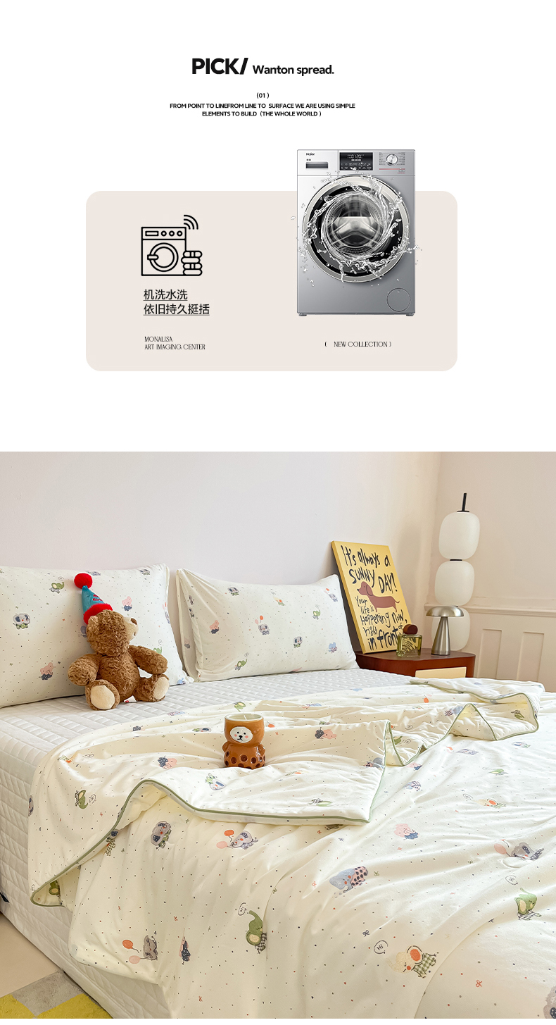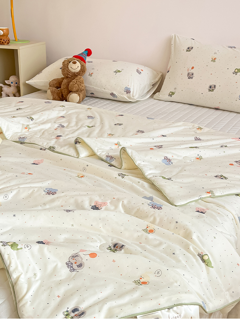 (总)一加一 2026春夏新款云小棉贴布绣花大豆夏凉被空调被夏被四件套,波点小狗,波点熊仔,蜜桃小兔,抹茶熊猫,奶油小鳄鱼