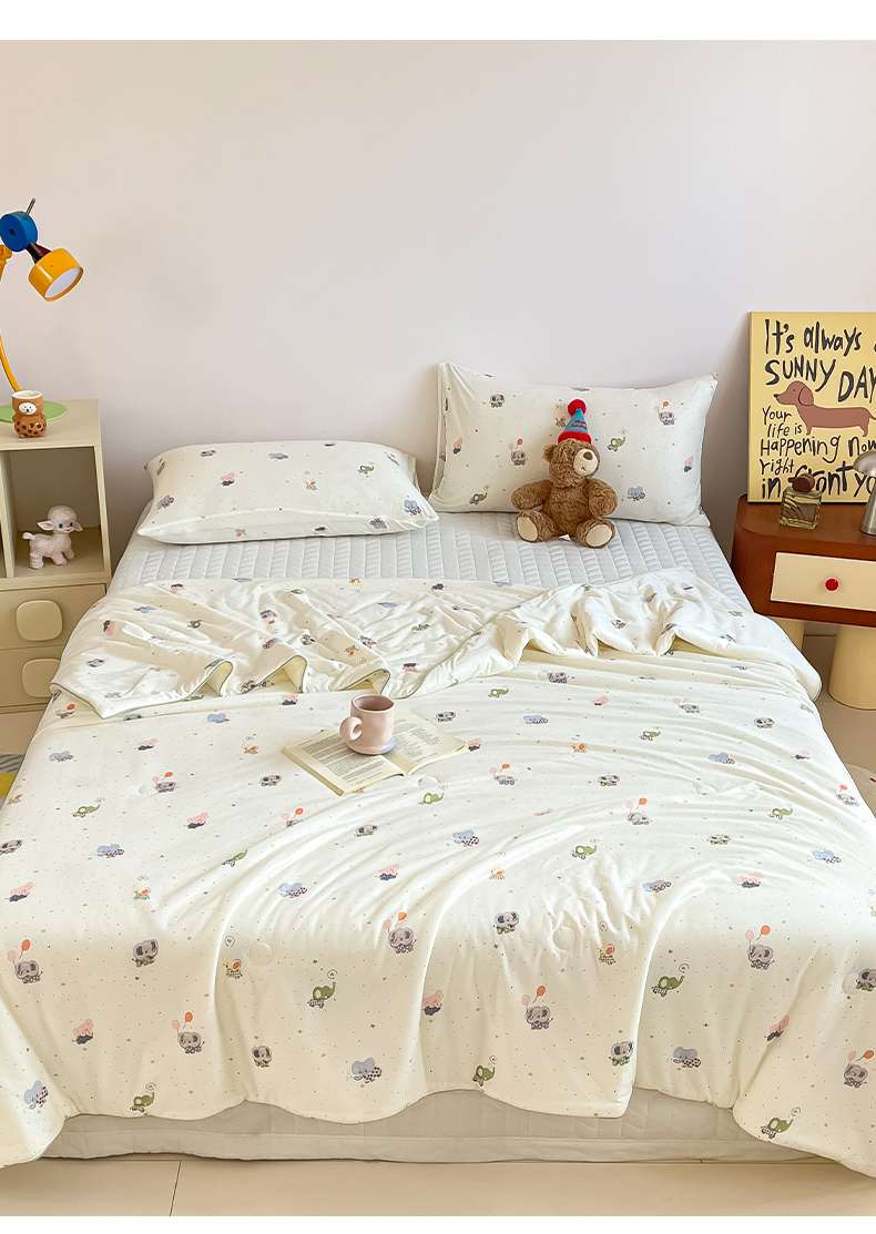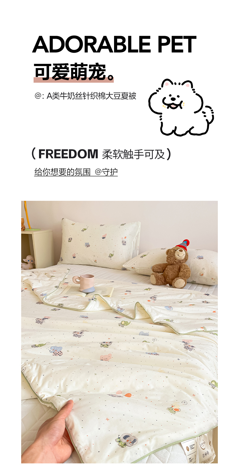 (总)一加一 2026新款A类牛奶丝针织棉大豆夏被夏凉被空调被,哈尼小狗,花径小狗,可乐修狗,快乐小马驹,美拉德熊,你好鸭!,条纹西高地,小象来喽,幸运加马