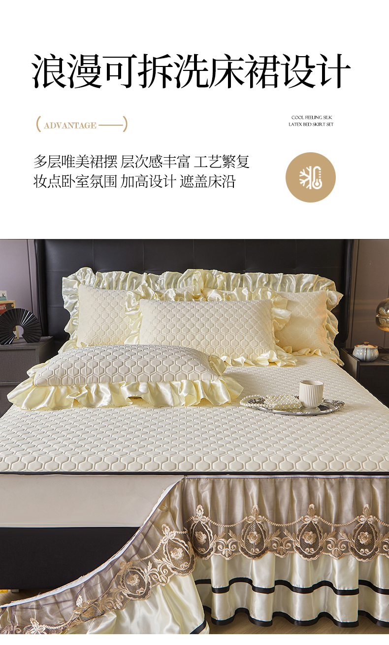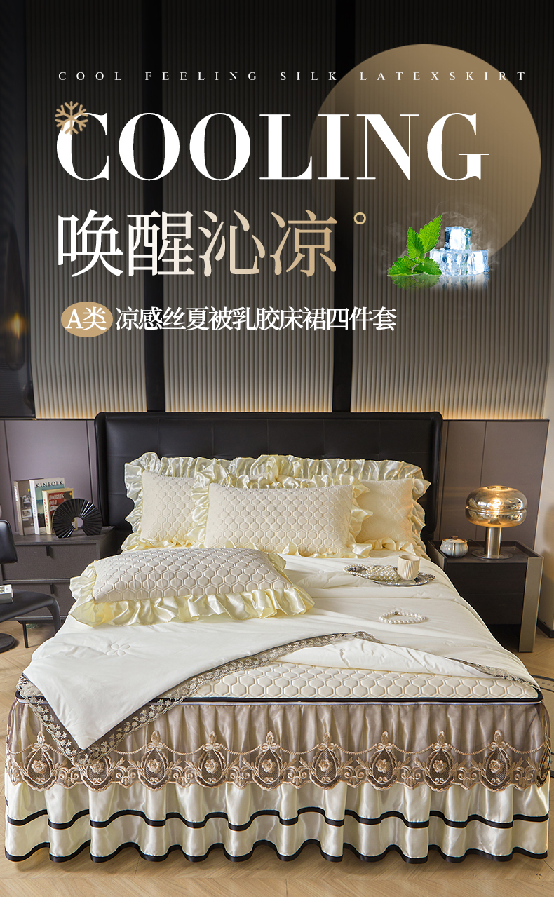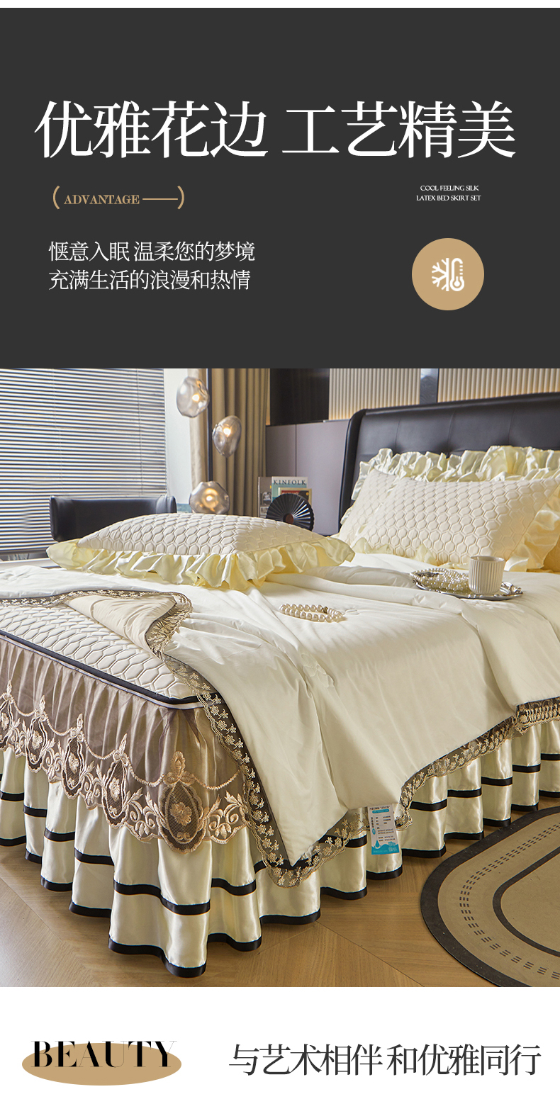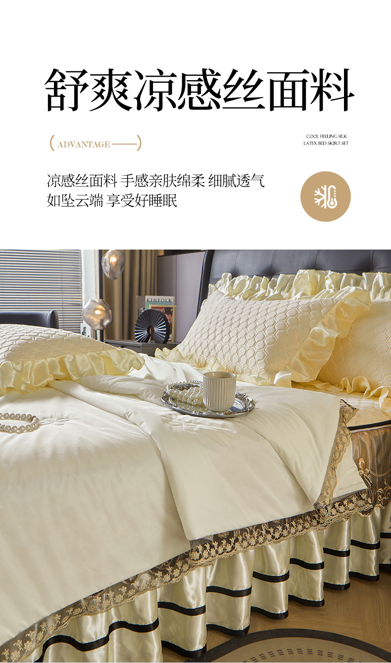 好儿喜家纺 2026新款夏季夏被四件套乳胶床裙款-雅颂系列 雅颂-奶白