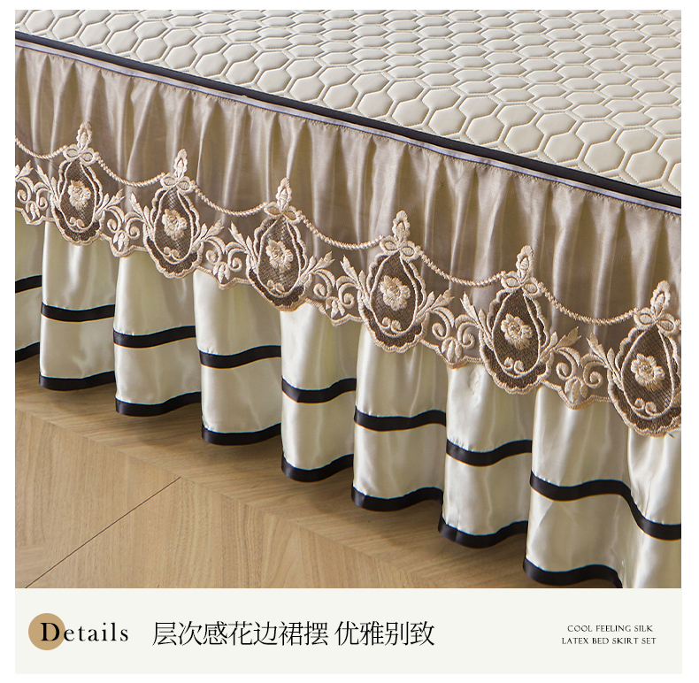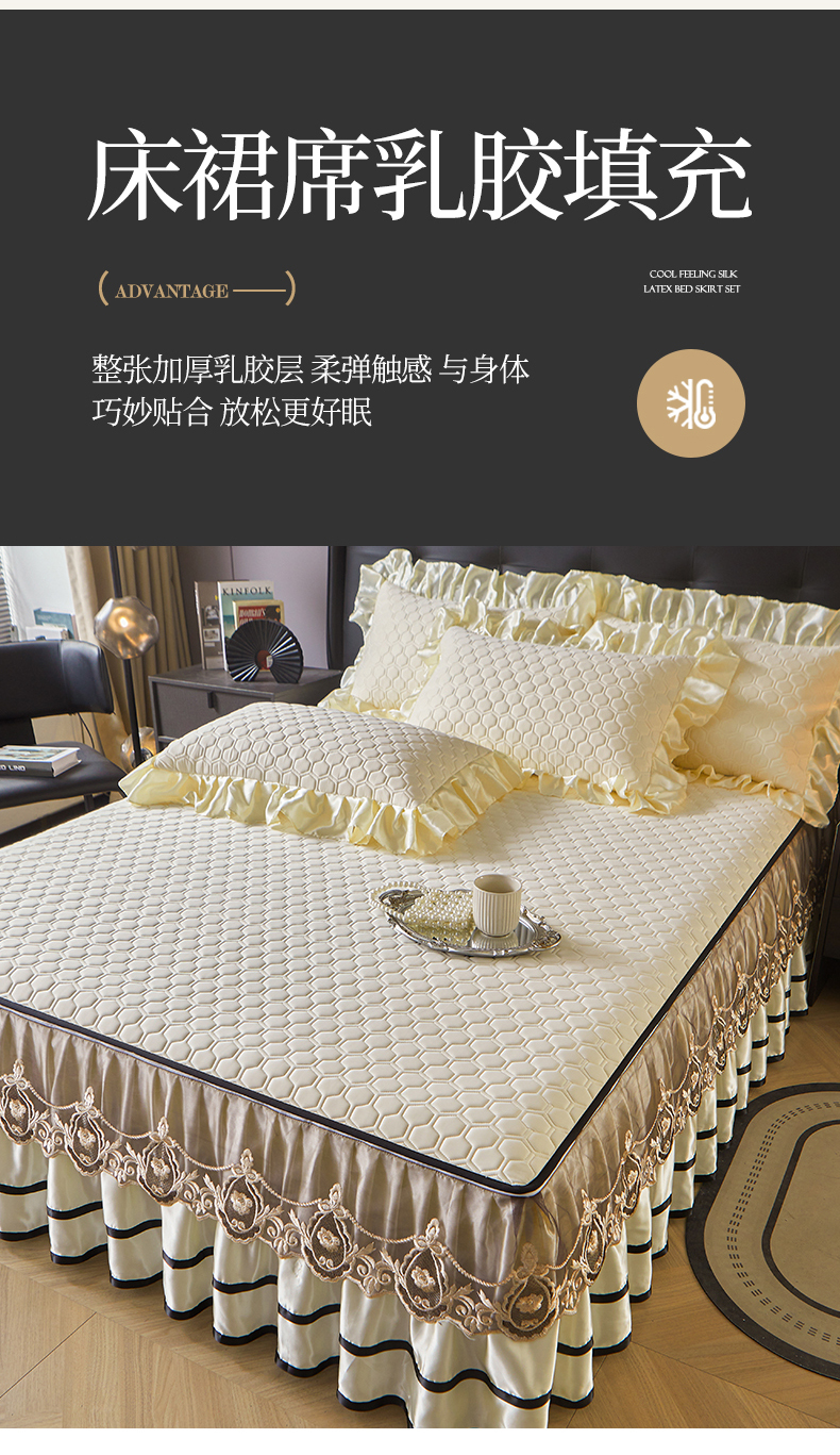 (总)好儿喜家纺 2024新款伊芙琳凉席床裙三件套,浅绿,橄榄绿,奶白,浅粉,浅蓝